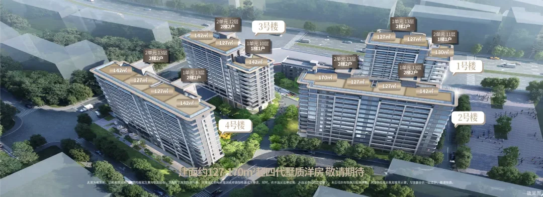 4栋总高10-13层的小高层,共计159户,规划车位170个