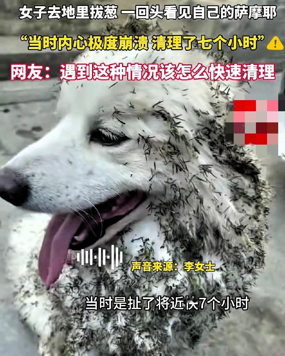 这萨摩耶点亮了新技能了吧! 湖南女子拔个葱的功夫,回头就见自家白狗裹满杂草,昨天刚洗的澡直接报废,光清理就折腾了7小时—— 这哪是养狗,是养了个“移动杂草收集器”啊! 其实养长毛犬真得提前做心理准备,它们的“造作能力”永远超出预期。 与其事后崩溃,不如出门前把狗子关好,真沾了杂草也别硬扯,先剪再梳效率更高。 毕竟养宠的快乐和麻烦是绑定的,谁让咱架不住它们卖乖呢? 你家毛孩子干过最让你崩溃的事儿是啥?来评论区吐槽下~