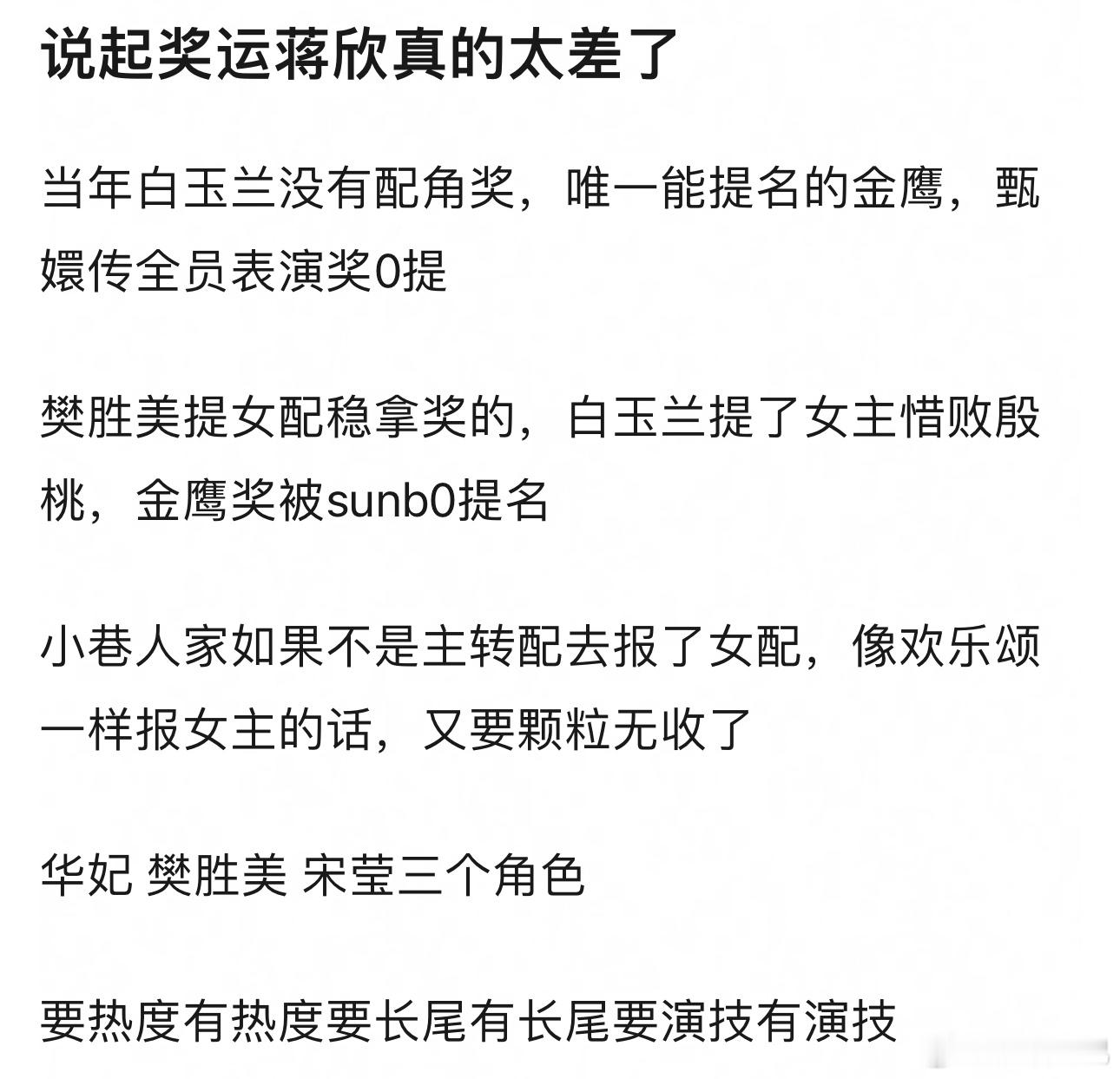 什么叫做乐极生悲看看钟楚曦就明白了她原本以为自己得了金鸡奖最佳女配,有了奖项傍身