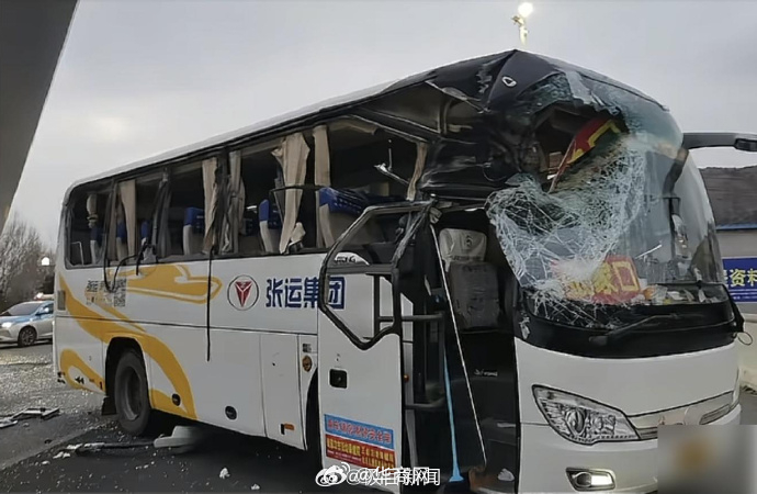 【 】 11月15日下午,河北张家口市一辆大巴车与一辆运输风力发电桨叶的大货车发生事故,大巴车车头及一侧车窗受损严重。15日晚, 记者从当地官方获悉,三名伤者送医,交警部门已介入。有网友发布的视频显示,道路上停着一辆损毁较为严重的大巴车,车身有“张运集团”相关标识。大巴车的车头受损较为严重,车身右侧车窗玻璃几乎全部缺失,车门处严重扭曲变形。现场还停放着一辆运输风力发电桨叶的大货车,桨叶停留的位置与前述大巴车车顶相隔很近。一名现场目击者告诉 记者,事发地位于张家口北高速出口附近,是一辆大巴车与一辆运输风力发电桨叶的大货车发生了碰撞,15日下午5时许,他路过时看到大巴车上还有乘客,当时未见到受伤人员。张家口市交警部门接线人员向极目新闻记者确认,他们接到了该起车祸的报警,具体由属地交警进行处理。张家口市万全区有关部门工作人员告诉 记者,此事交警部门及时出警,三名伤者已送医,属于轻微受伤,该起事故目前暂未定责,正在调查处理中。(极目新闻)