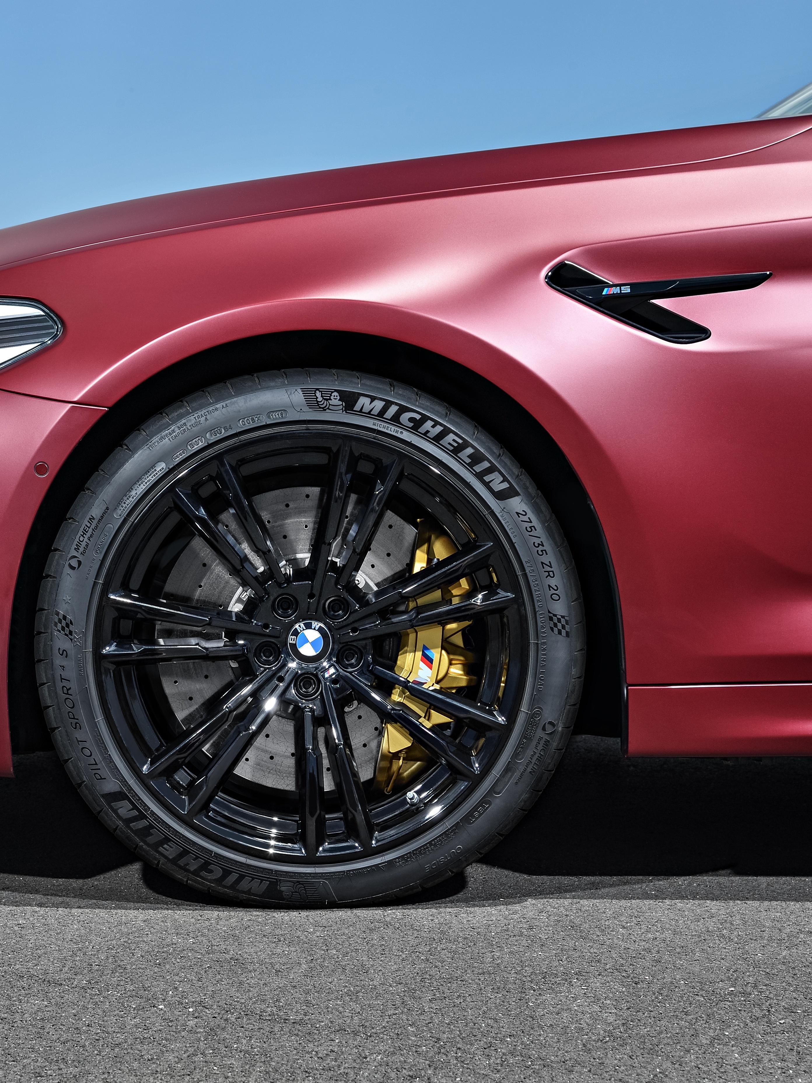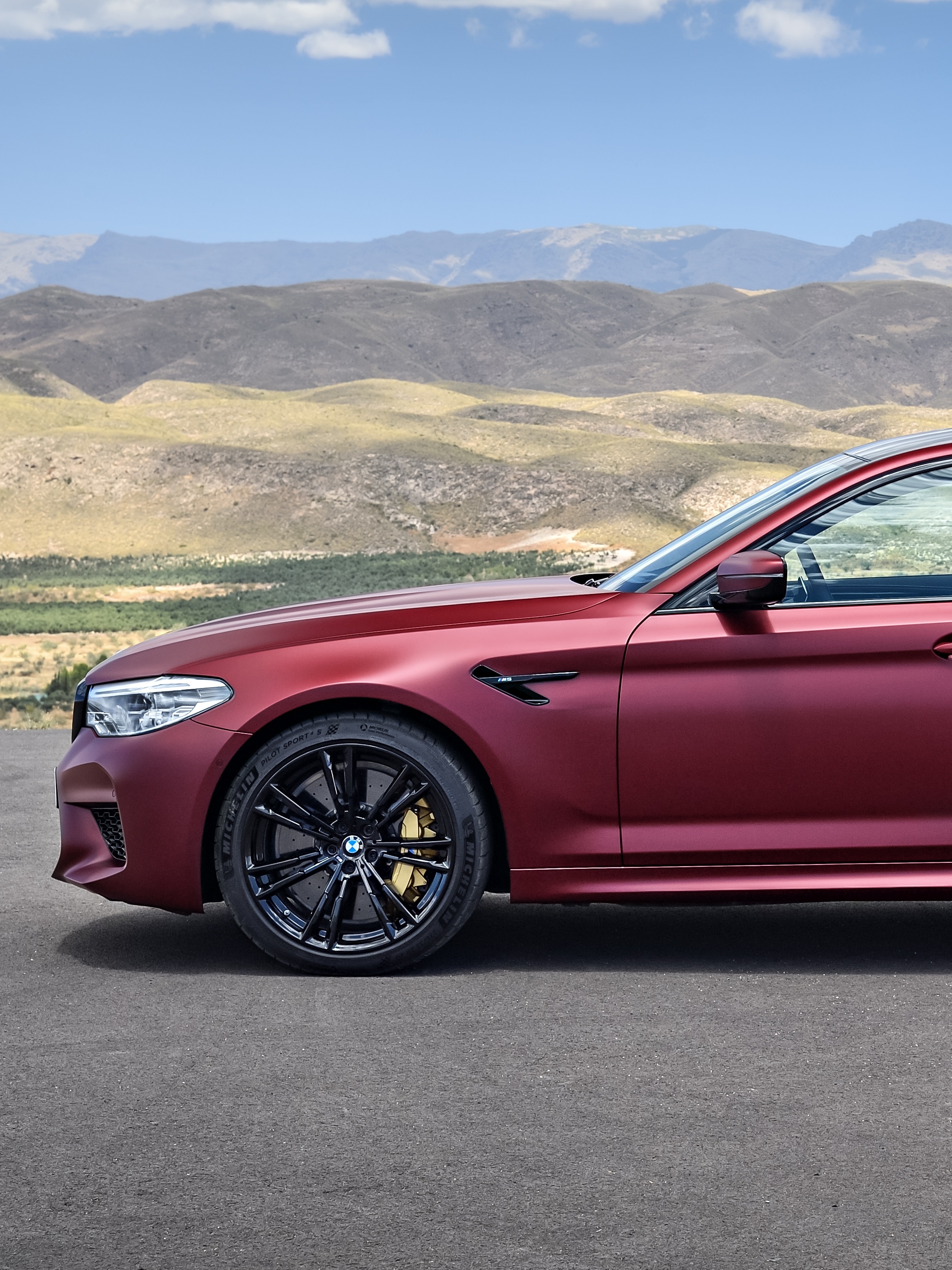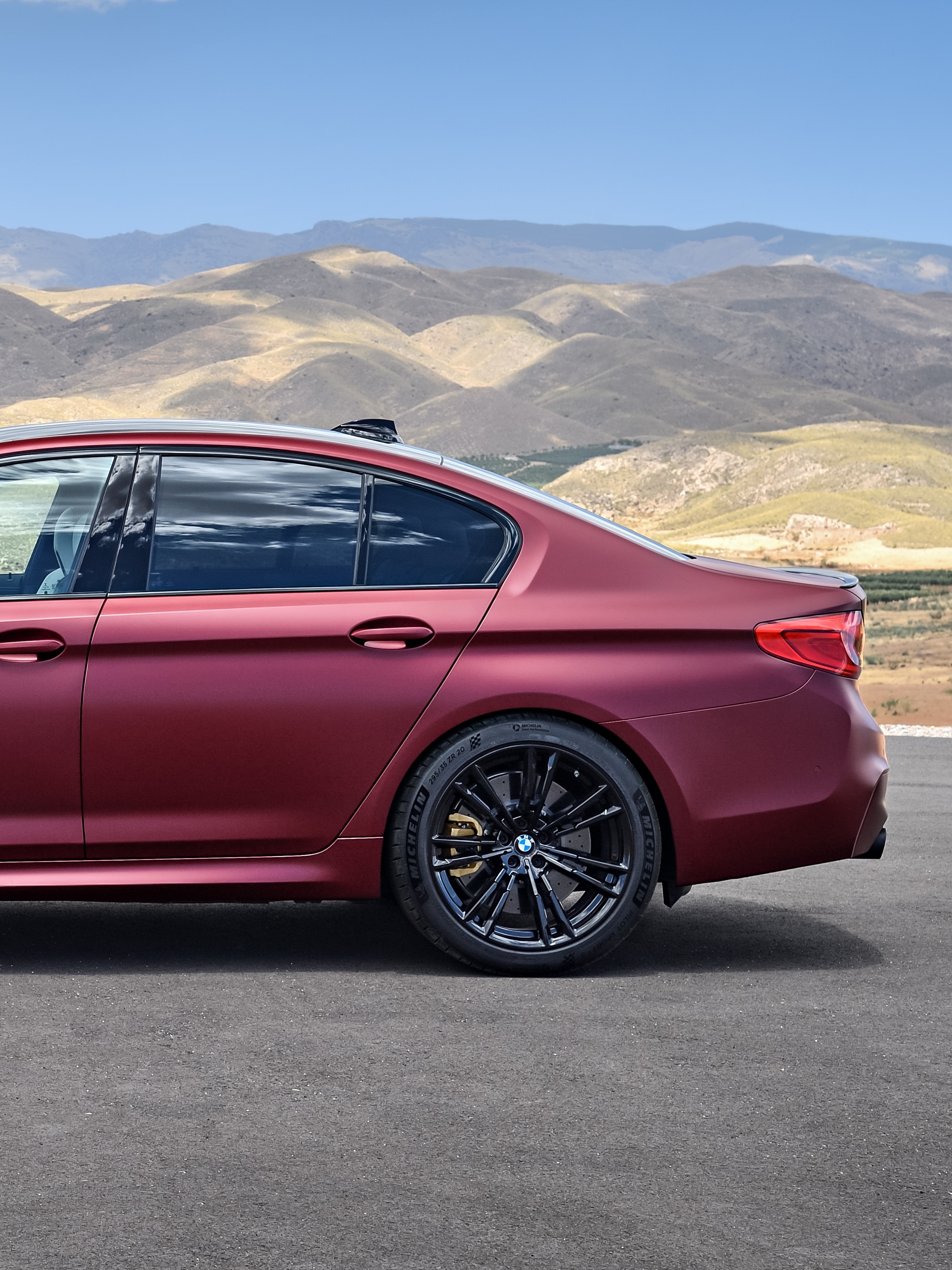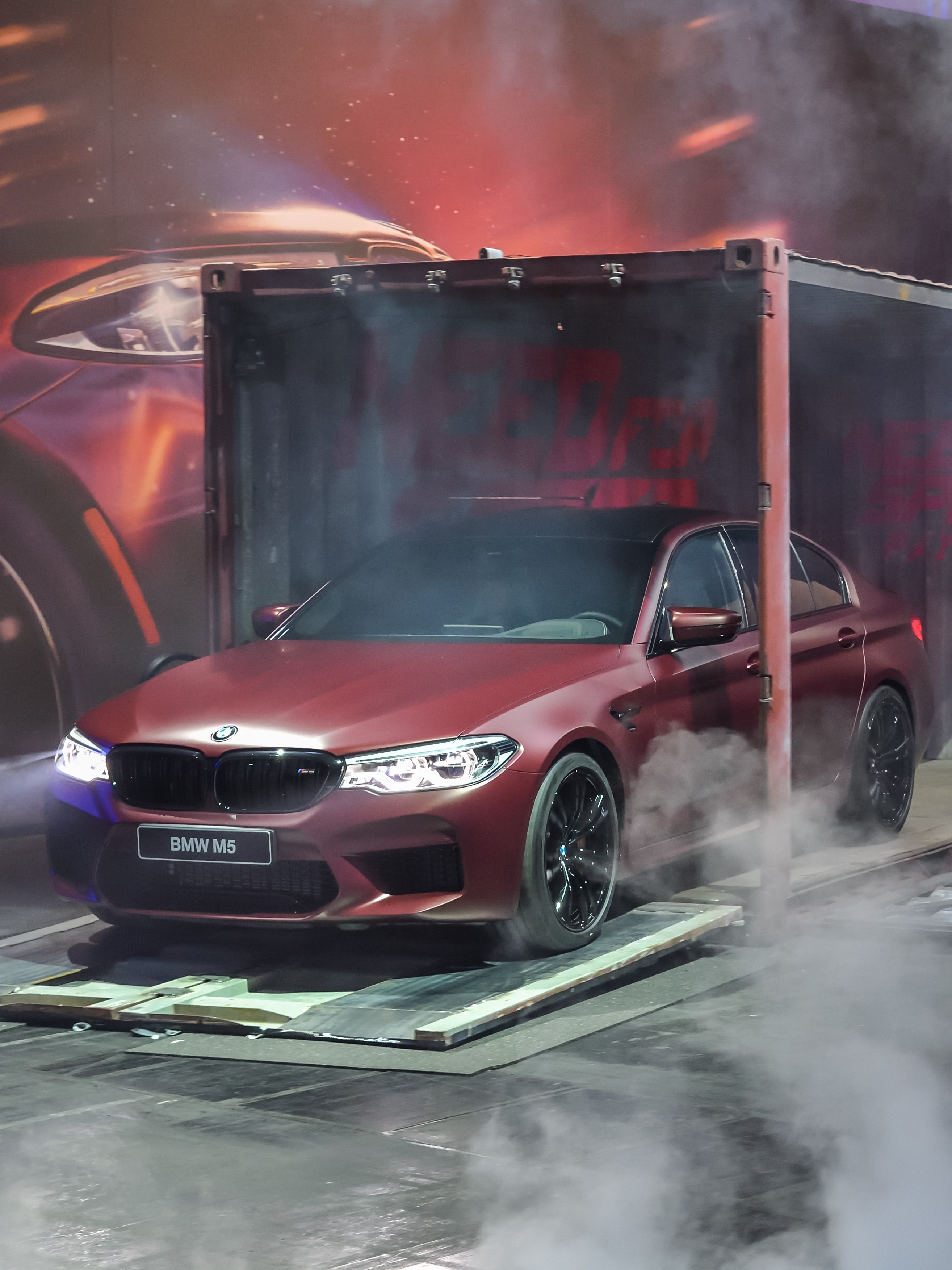 2017年8月,宝马发布了F90 M5,并同期首发了纪念版First Edition,从宣传物料上来看,这台车是和极品飞车游戏联合打造的,其外观车漆颜色叫做Frozen Dark Red Metallic,全球限量400台。就现在来看,我个人还是非常喜欢这台车的,即便它是上一代的中期改款前的车型,即便已经过去了8年,从里到外的设计都很有格调,用料也扎实。F90 M5(包括后来的雷霆版)都是S63 V8引擎,这台标准版动力是600马力/750牛米,名副其实的扮猪吃老虎。
