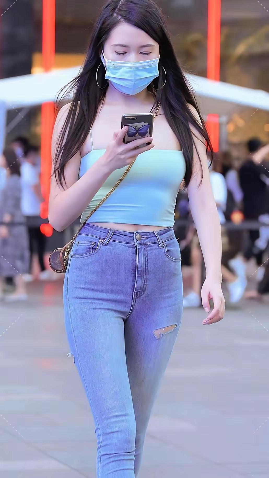 紧身牛仔裤穿搭穿搭 街拍 高清美女 好身材性感女神 牛仔裤