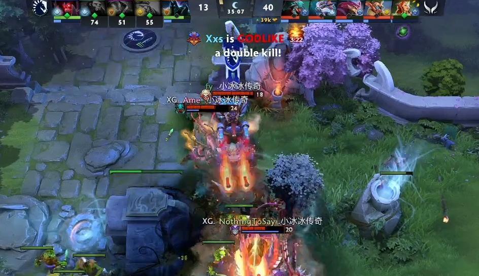 XG vs Liquid第二局,XG将开局抢赏金符取得的优势顺利转化到了对线期并成功打出三路线优,这把有点像双方第一局的翻版,虽然Liquid一直在顽强防守找机会,但在15k以上的经济差面前毫无反抗之力,恭喜XG将比赛拖进图三