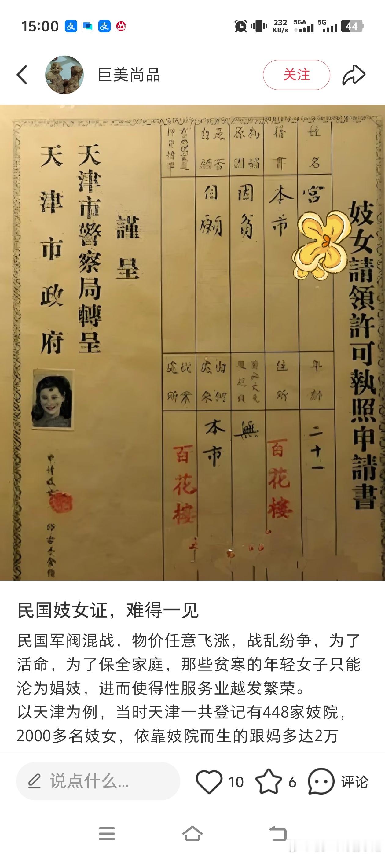 民国时期娼妓健康证一览,现如今香港地区此类行业仍需持证上岗