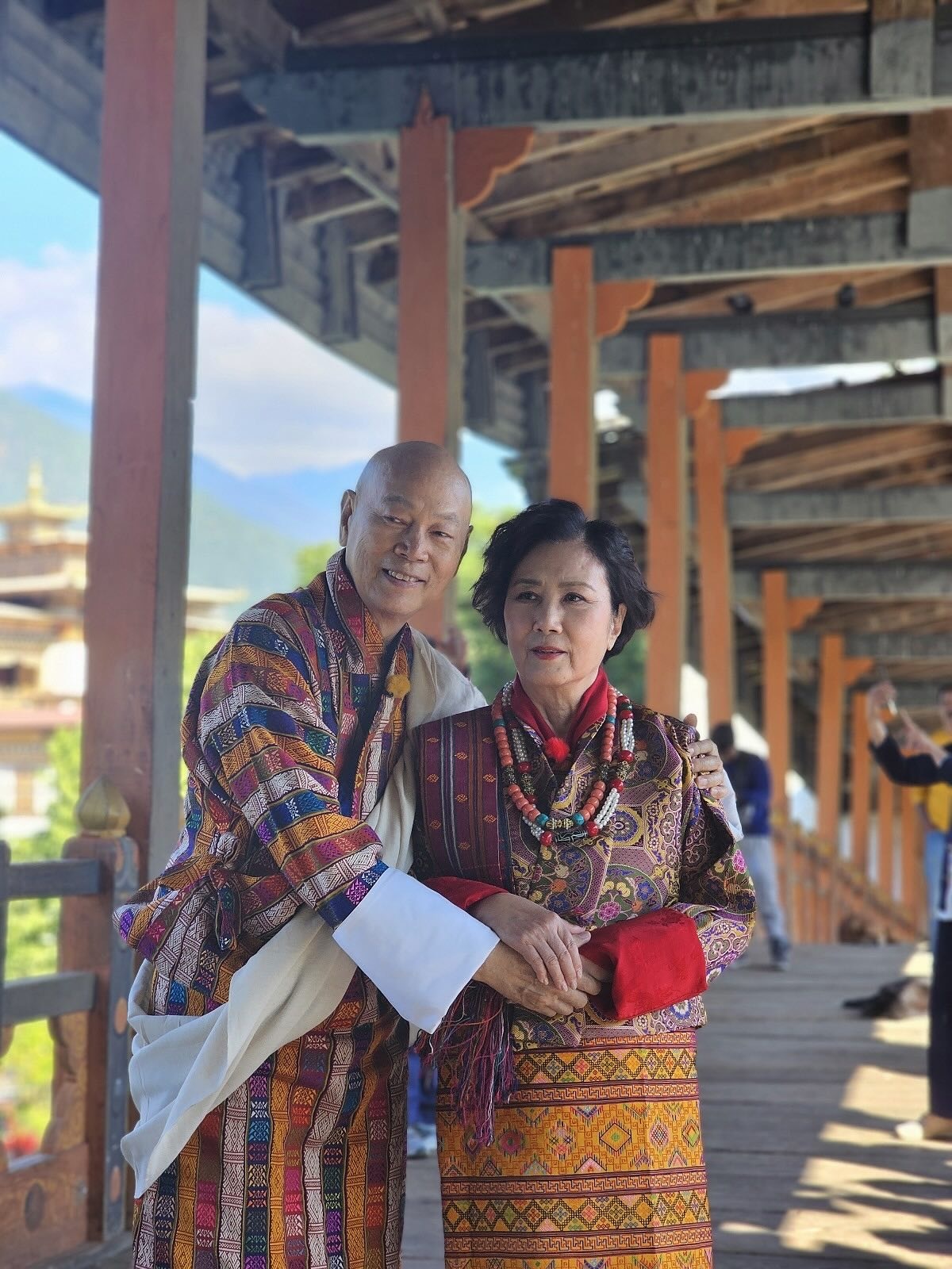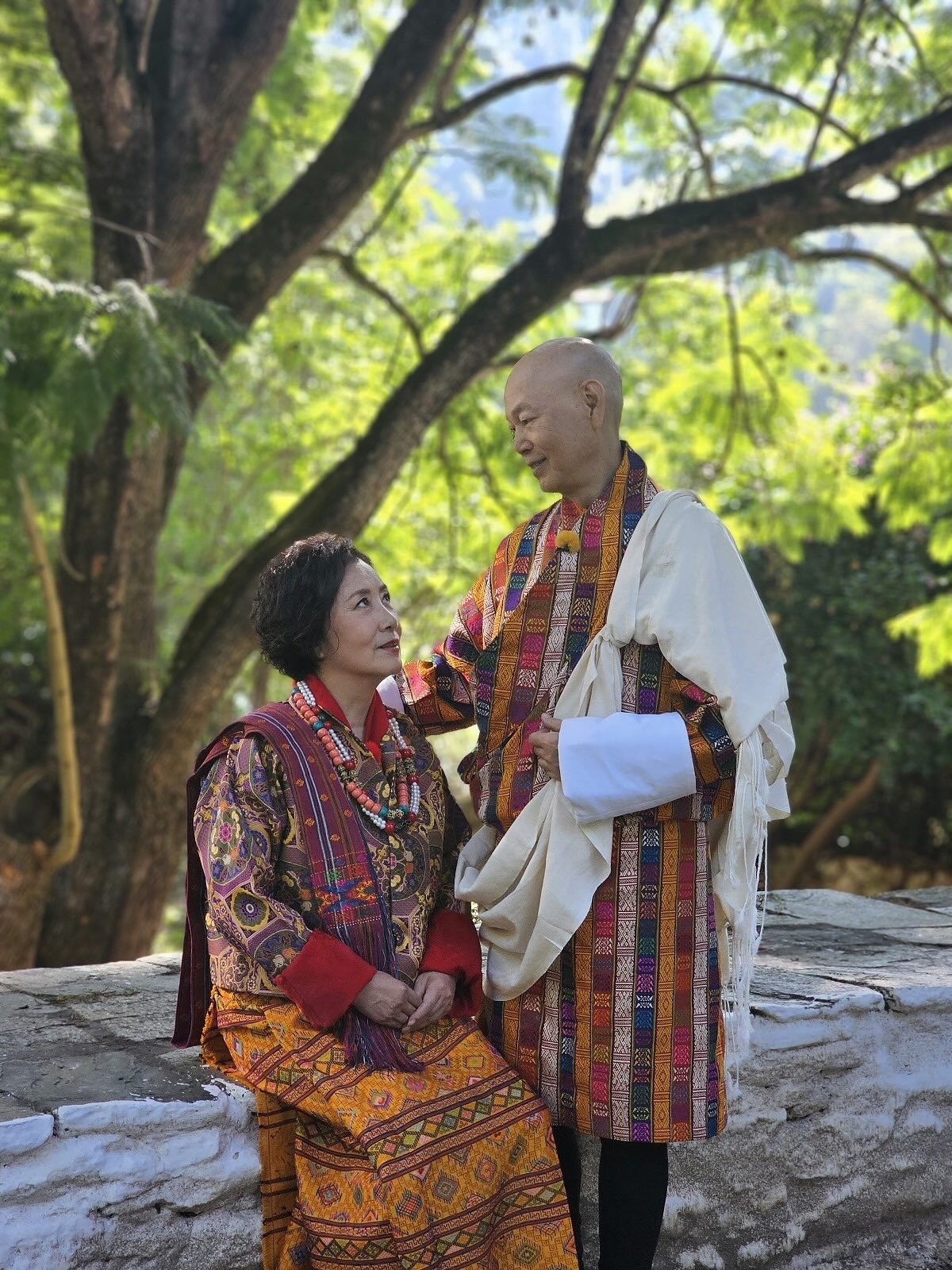 汪明荃罗家英在不丹补拍结婚照,体验不丹结婚仪式。