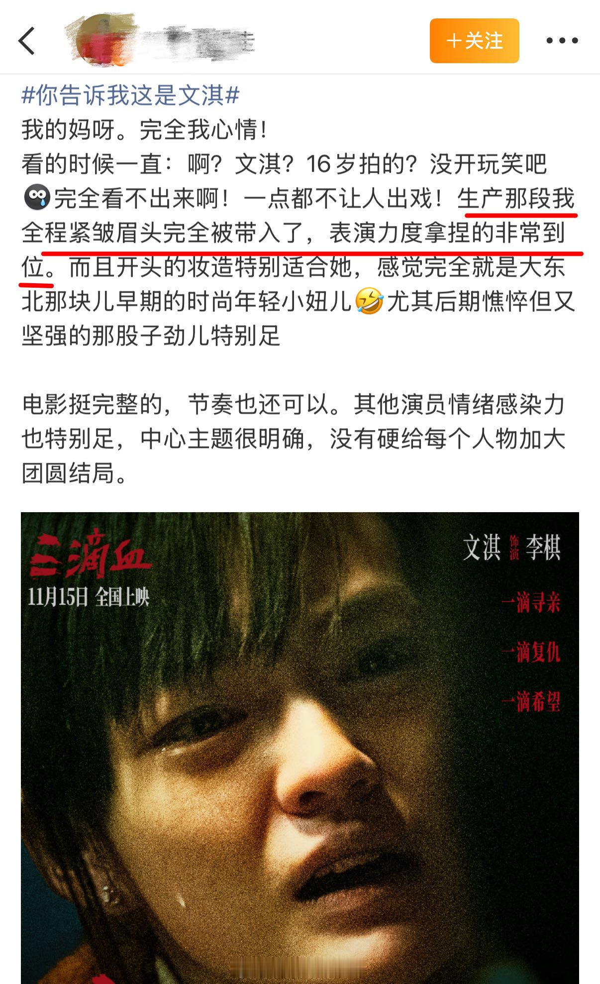 文淇贡献了教科书般的演技… 你们走进影院看电影《三滴血》了吗?
