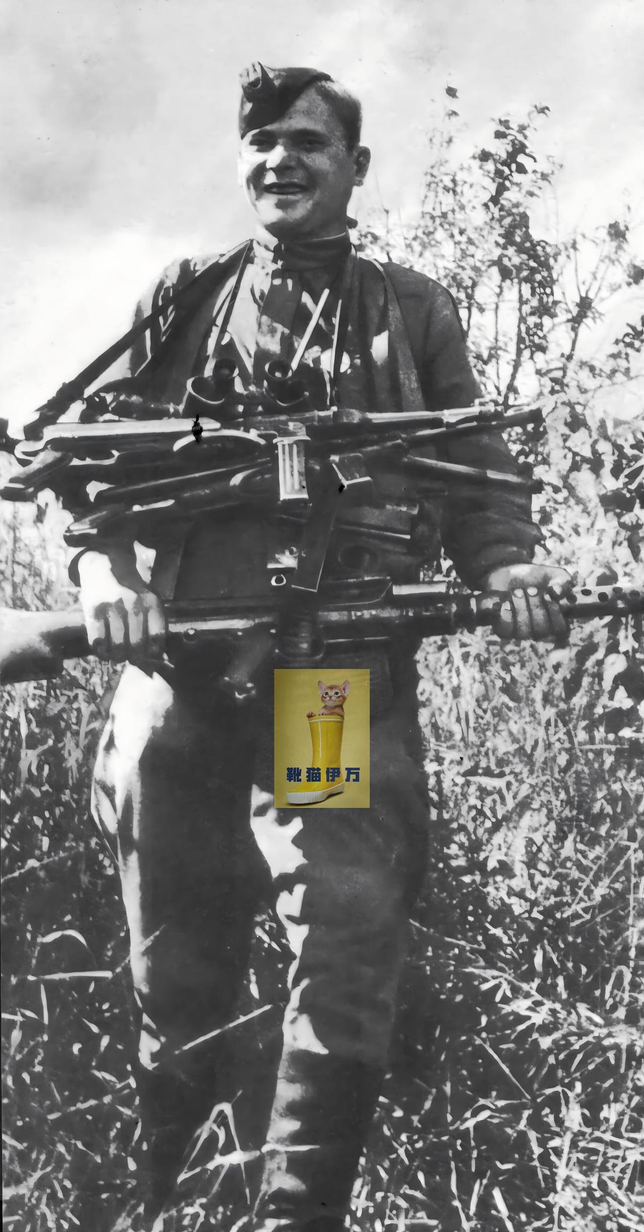 [呲牙] 缴获颇丰——二战时期,苏军突破德军防线后,一名苏联士兵喜笑颜开地搬运着缴获的德军枪械。从照片上来看,他至少缴获了两种德国枪械,除了大家耳熟能详的MP-38/40冲锋枪外,还有一挺机枪,您能说出型号吗?