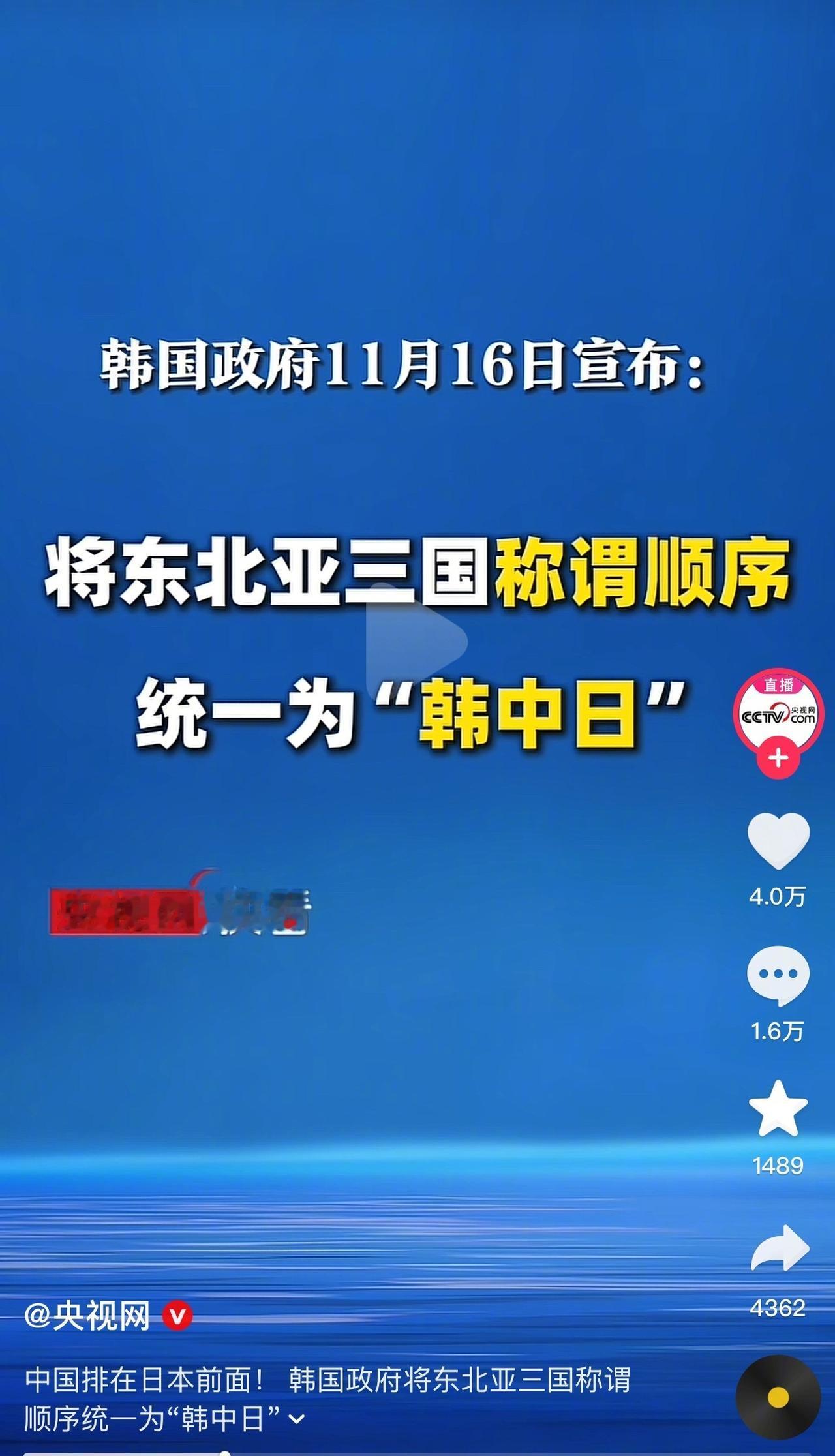 韩国宣布,以后将把韩日中改为韩中日,一个没有任何实质意义的文字游戏,半斤的八两,两个对我们都不友好! 但是怎么他们重新排个序就有人说对我们友好了? 总感觉他们是在试探我们,因为他们目前在中美之间走钢丝,既想吃我们的红利,也不想得罪美,通过这种排序表态一下,但我们并不会因为这种排序就会给他们开绿灯,日本也不会因为这排序而认输,美国更不会因为这排序有任何改变! 再说了我们排哪里需要他们说了算?小学生换座位都不像他们一样随意!一会韩日中,一会韩中日的!