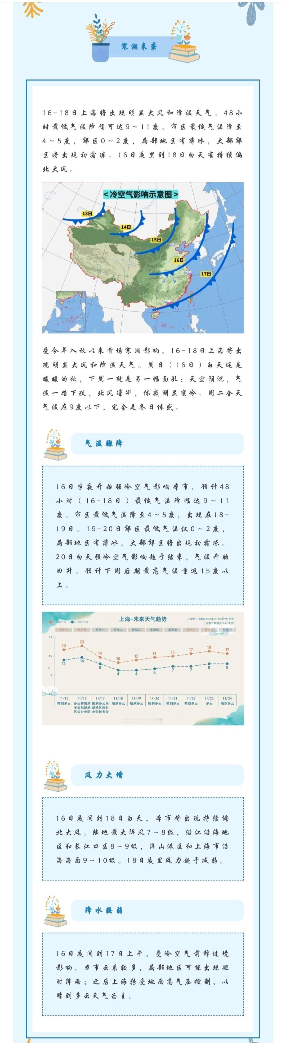 秋日正暖,寒潮忽至🥶 气温骤降,大风伴行🍂 请查收这份防寒保暖提醒 添衣防风,照顾好自己 让温暖与安全相伴~ 来源|园园在复旦