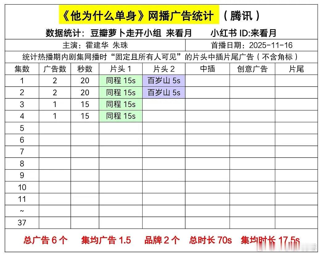 霍建华 朱珠《他为什么单身》首播广告数据 (11.16更)开局2广→1广