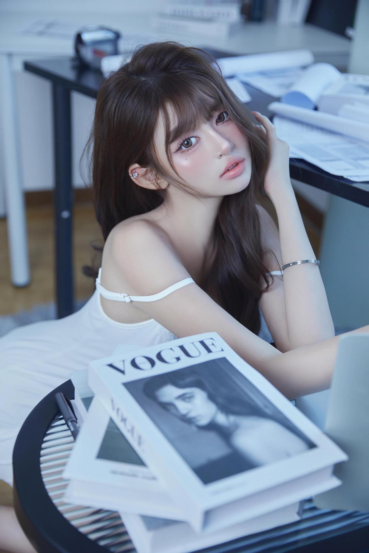 田曦薇身披ELLE黑色蕾丝吊带,宛若暗夜绽放的玫瑰。轻纱勾勒出曼妙曲线,蕾丝花
