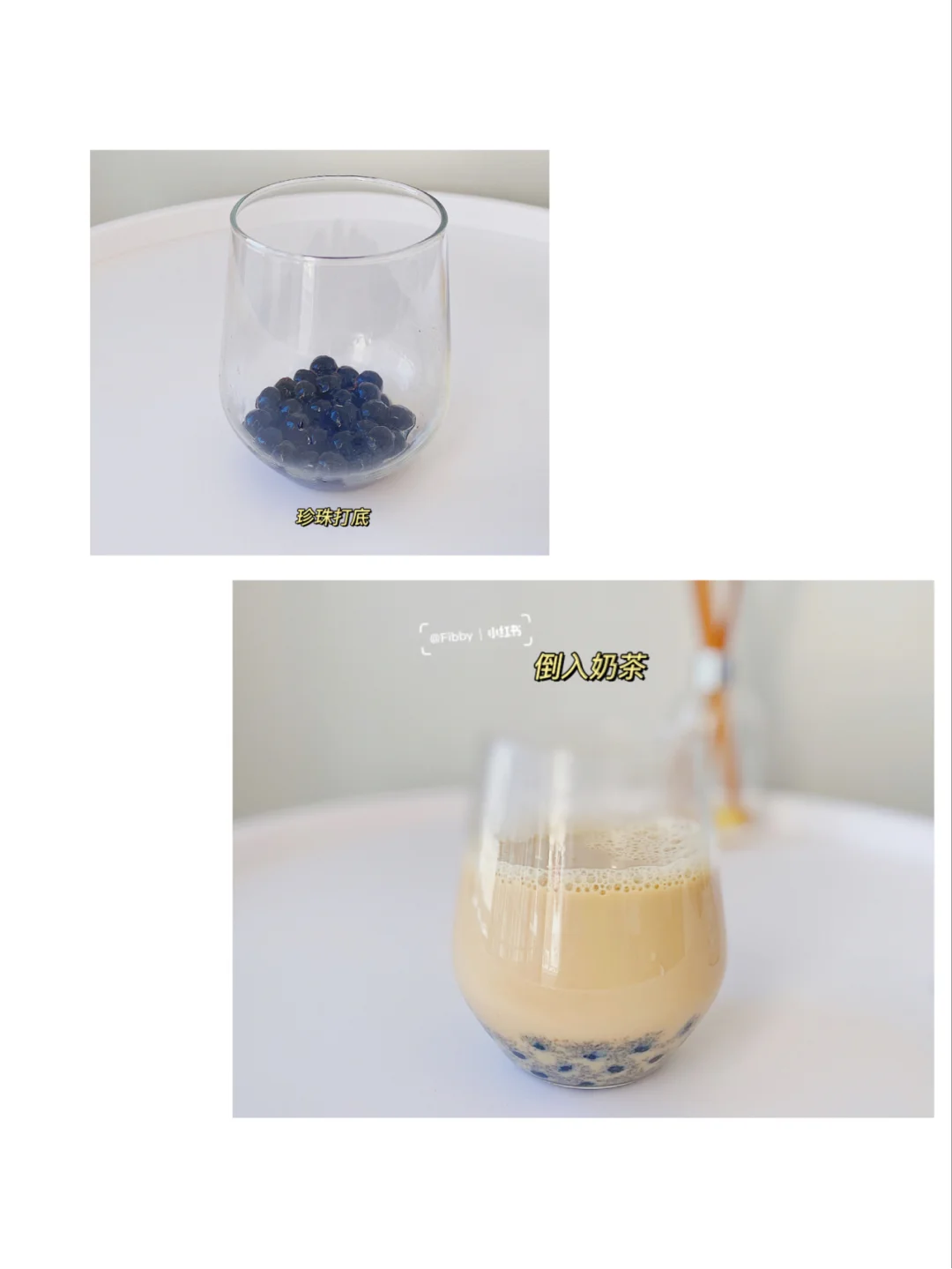 7️⃣超高颜值的一杯自制低卡珍珠奶茶就做完了🥤