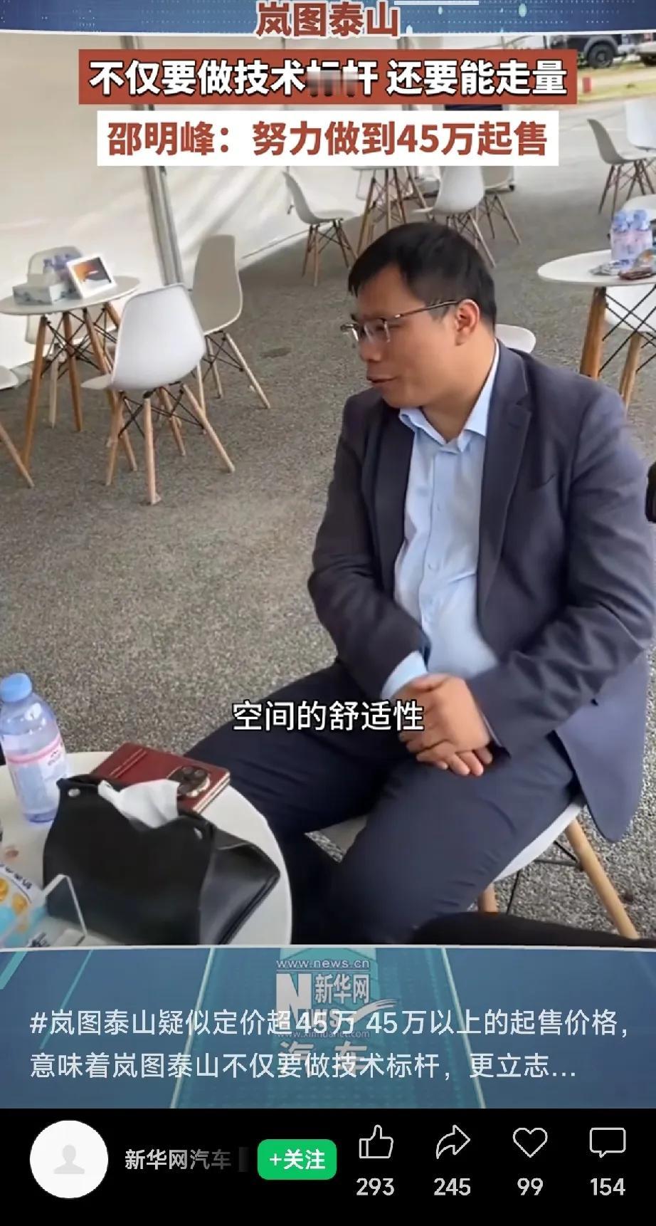 近日玛莎拉蒂和阿尔法罗密欧CEO到访东风标致和东风雪铁龙营销中心,细心的网友发现,接待车辆是东风和华为合作的岚图梦想家! 央企高管爆金句,岚图泰山和问界M9是屠龙刀和倚天剑。当新华网采访会不会和M9价格一样50万起?领导回答努力45……个人觉得价格应该在38-55区间,45是的中位数……