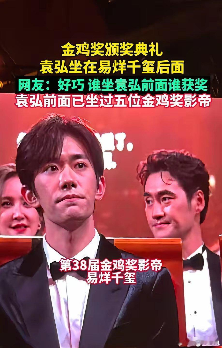 明明金鸡奖影帝得主是易烊千玺但是却让袁弘火了一把背后原因竟然是袁弘前面的座位已经