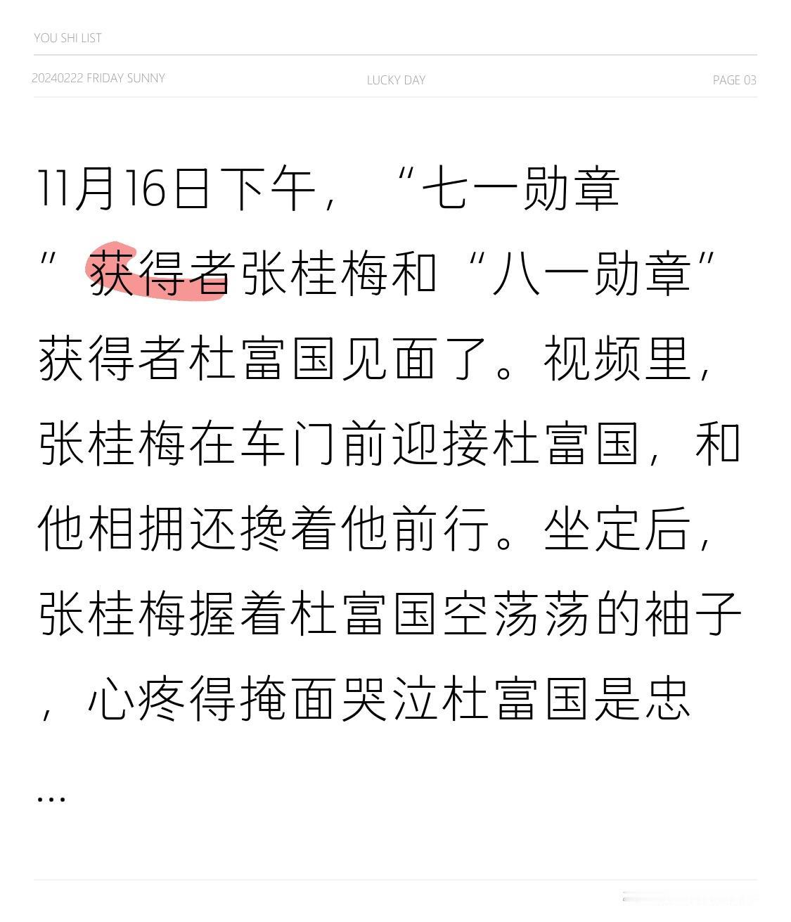 11月16日下午,“七一勋章”获得者张桂梅和“八一勋章”获得者杜富国见面了。视频里,张桂梅在车门前迎接杜富国,和他相拥还搀着他前行。坐定后,张桂梅握着杜富国空荡荡的袖子,心疼得掩面哭泣张桂梅 张桂梅带状疱疹 杜富国是忠诚使命、英勇无畏的排雷英雄,2018年排雷时为保护战友失去双手双眼,全身近70处伤疤。张桂梅看到他这副模样,一句“你咋这么不小心……”满是心疼。英雄与英雄同框,信仰共鸣,他们都是时代楷模,精神传承令人动容