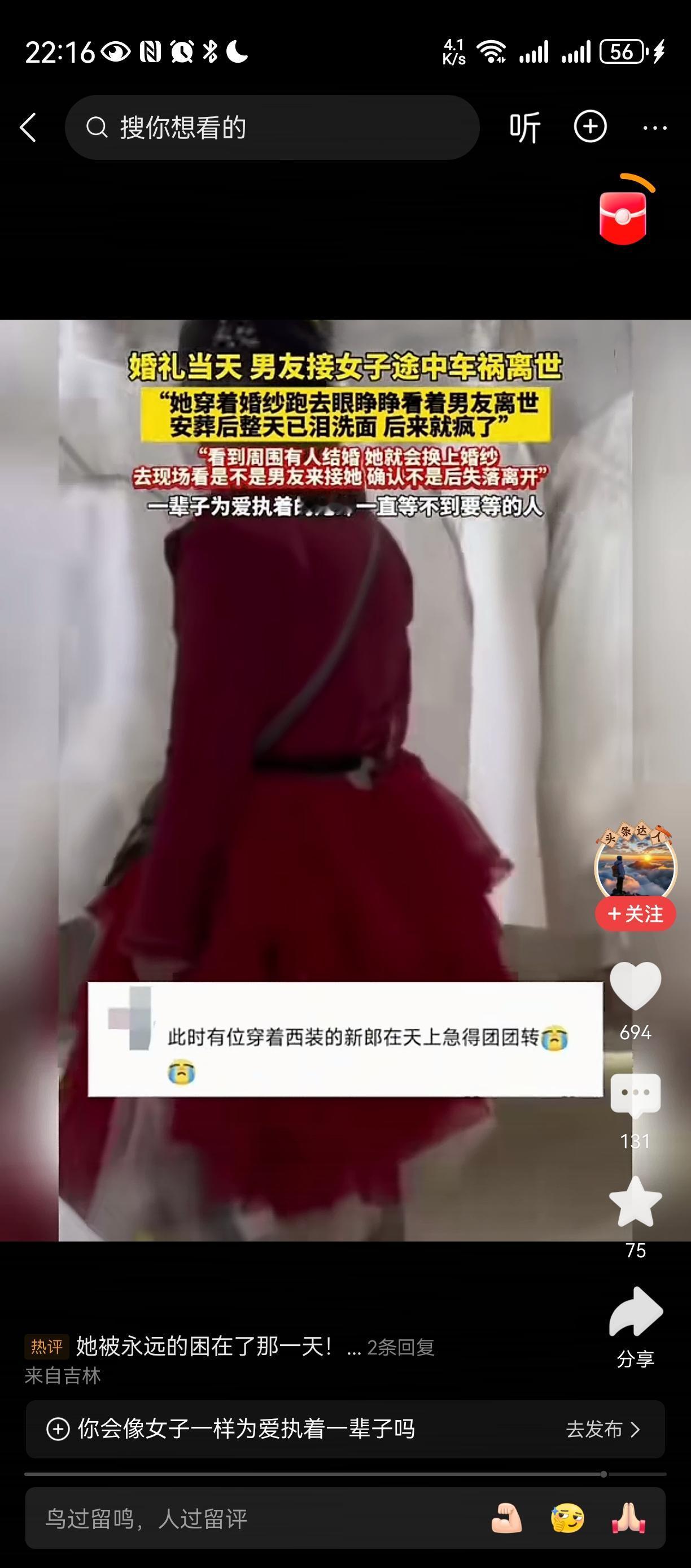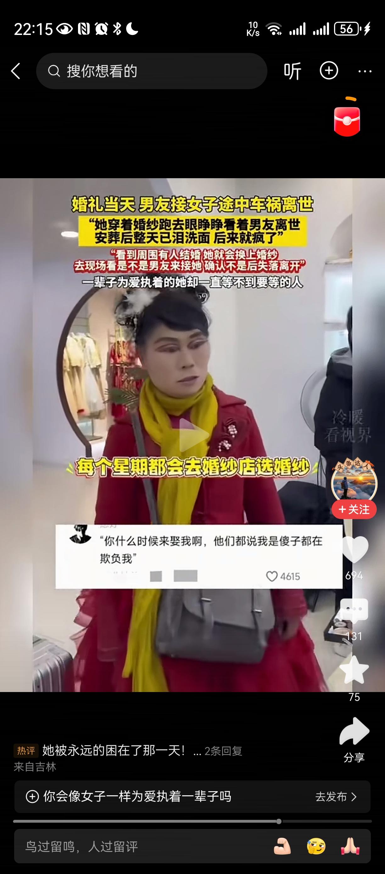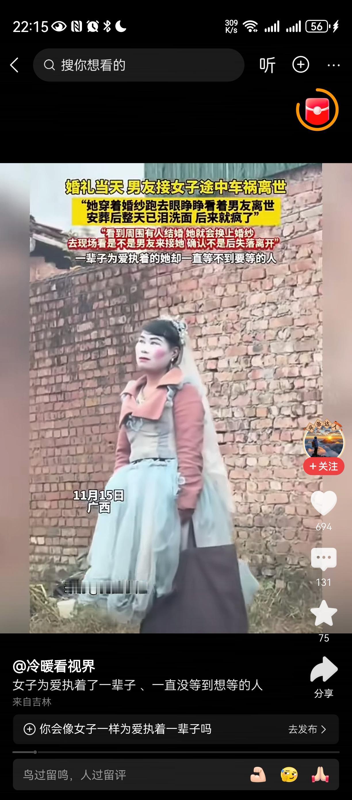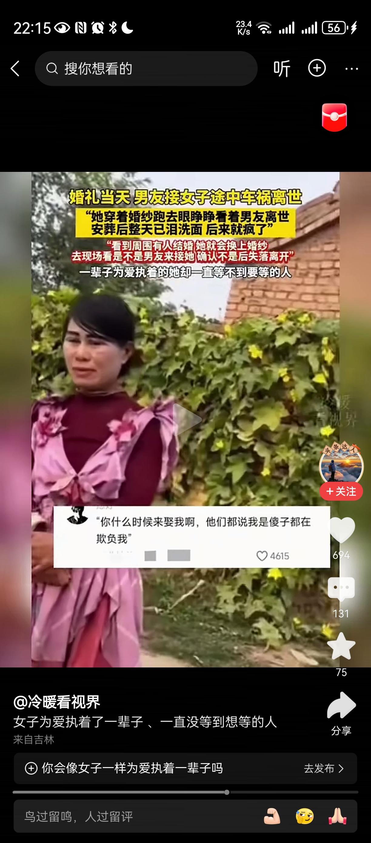 傻女人[祈祷][祈祷][祈祷] 难道人世间没有被爱情更重要的东西? 她的父母亲人呢? 人不能为自己而活吗? 感情只是其中的一小部分啊?傻姑娘语录 生命诚可贵, 爱情价更高? 我觉得是错误的, 人首先是社会动物, 然后才去情爱之类的!