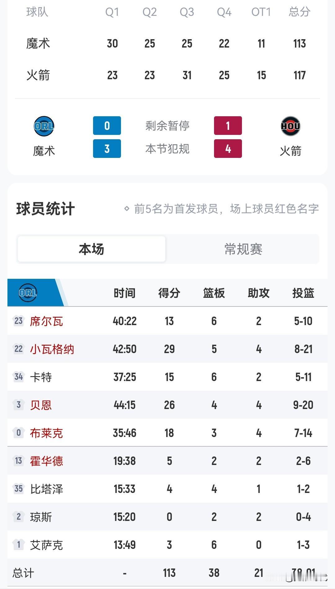 杜兰特35+6 申京30+13+8 火箭加时胜魔术