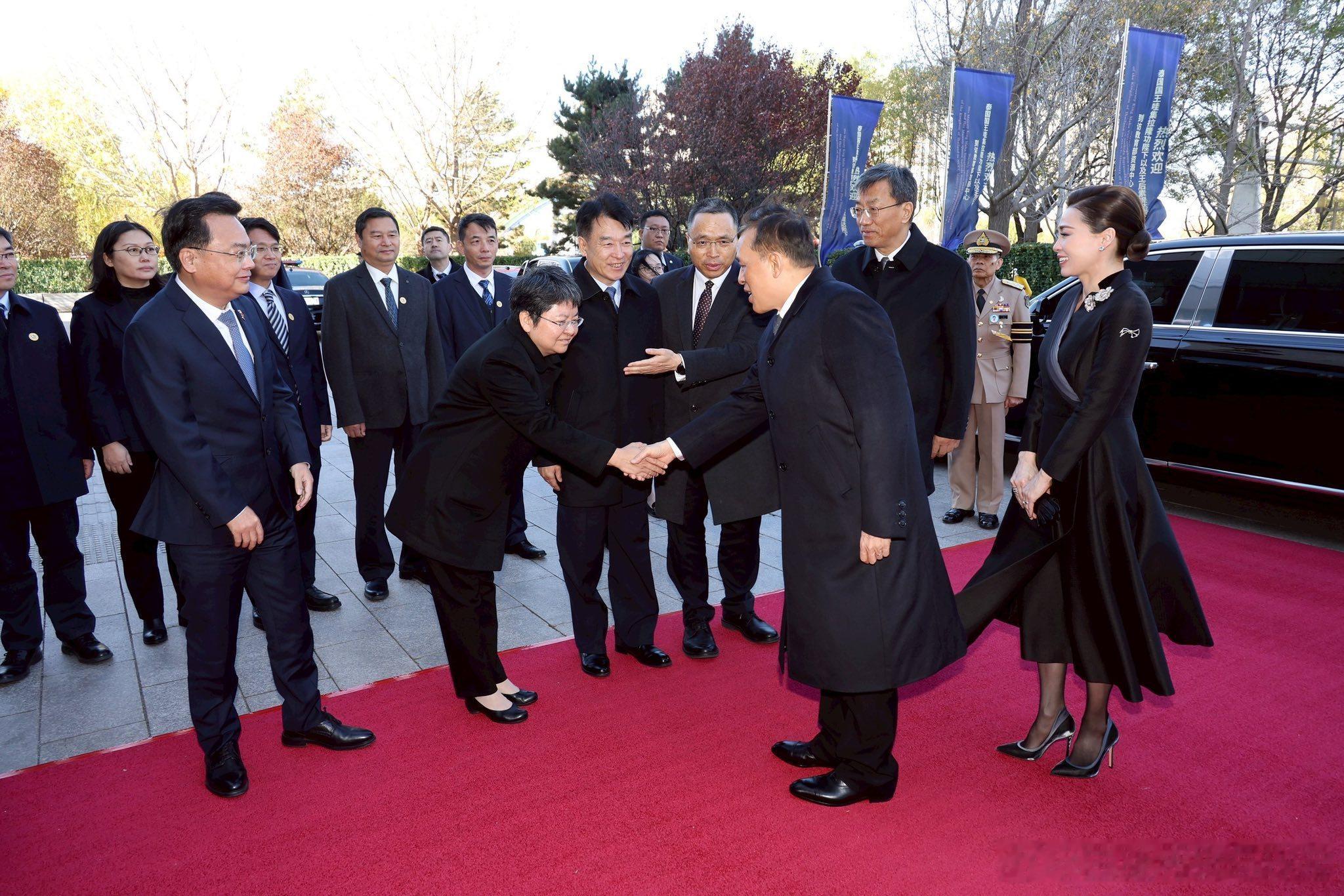 2025.11.15 泰国国事访华Day 4,泰国国王夫妇访问北京航天城和教育部资源中心,苏提达算是开创了丧期时尚化,把丧服穿出花来。