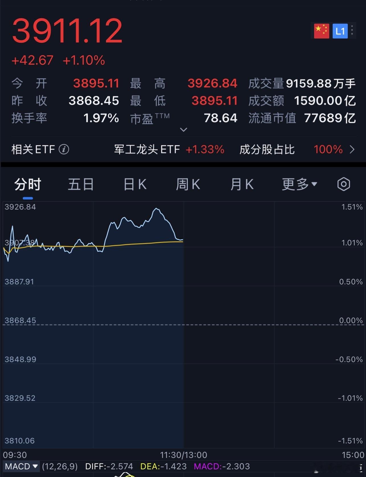 周末发生挺多事儿,按照常理讲今天军工应该有所表现,然而截至上午收盘军工指数只涨了