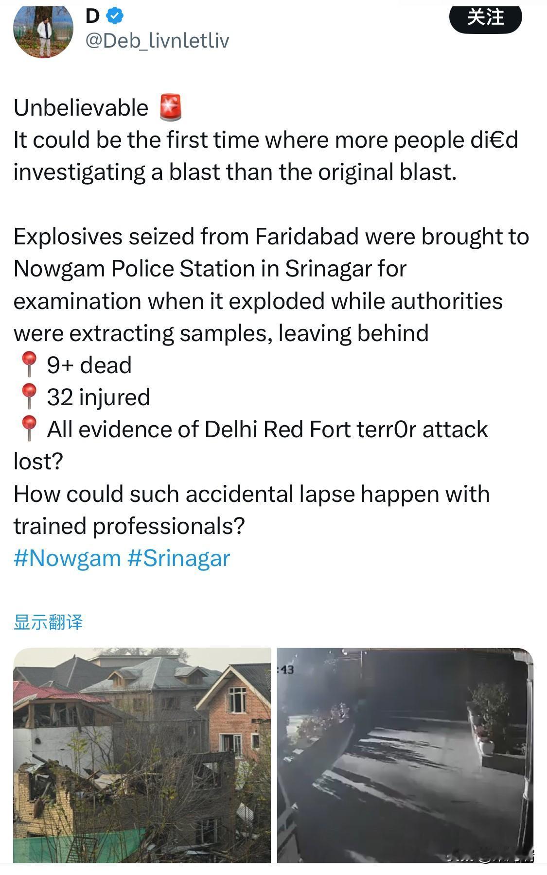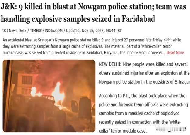 整活儿还得看印度。 印度新德里红堡爆炸案发生后,印度警察查获2900公斤炸药,11月15日在警察局提取炸药样本(360 公斤)时发生爆炸,又造成9死29伤…… 真是悲剧又荒谬。为了捣毁一个恐怖组织,查谟和克什米尔邦警方从法里达巴德运来“360公斤”炸弹材料作为样本,并将其存放在斯利那加附近的瑙加姆警察局。结果炸弹爆炸,造成9人死亡。这简直是笨拙和无能的典型案例,这些炸弹本应存放在安全距离之外。
