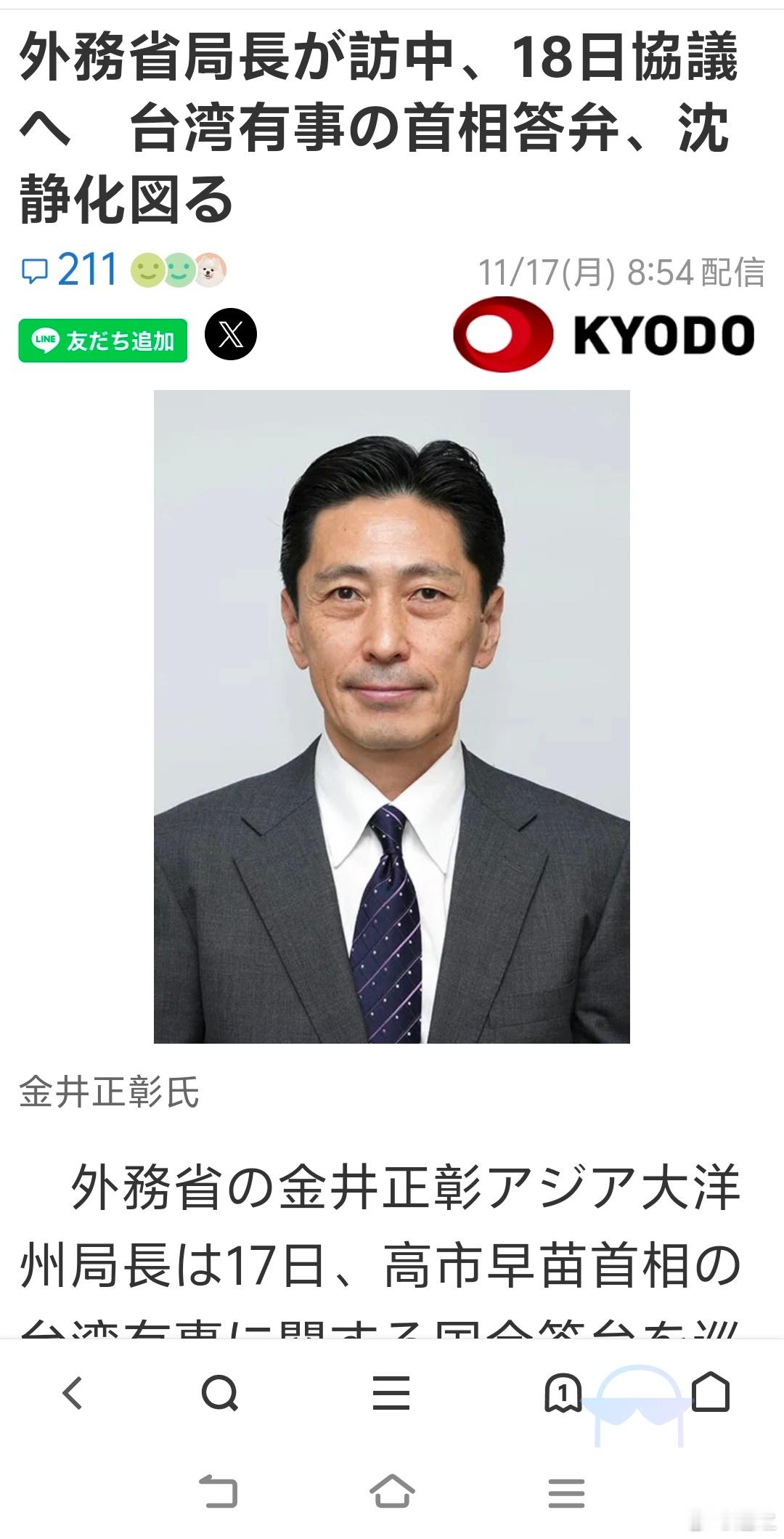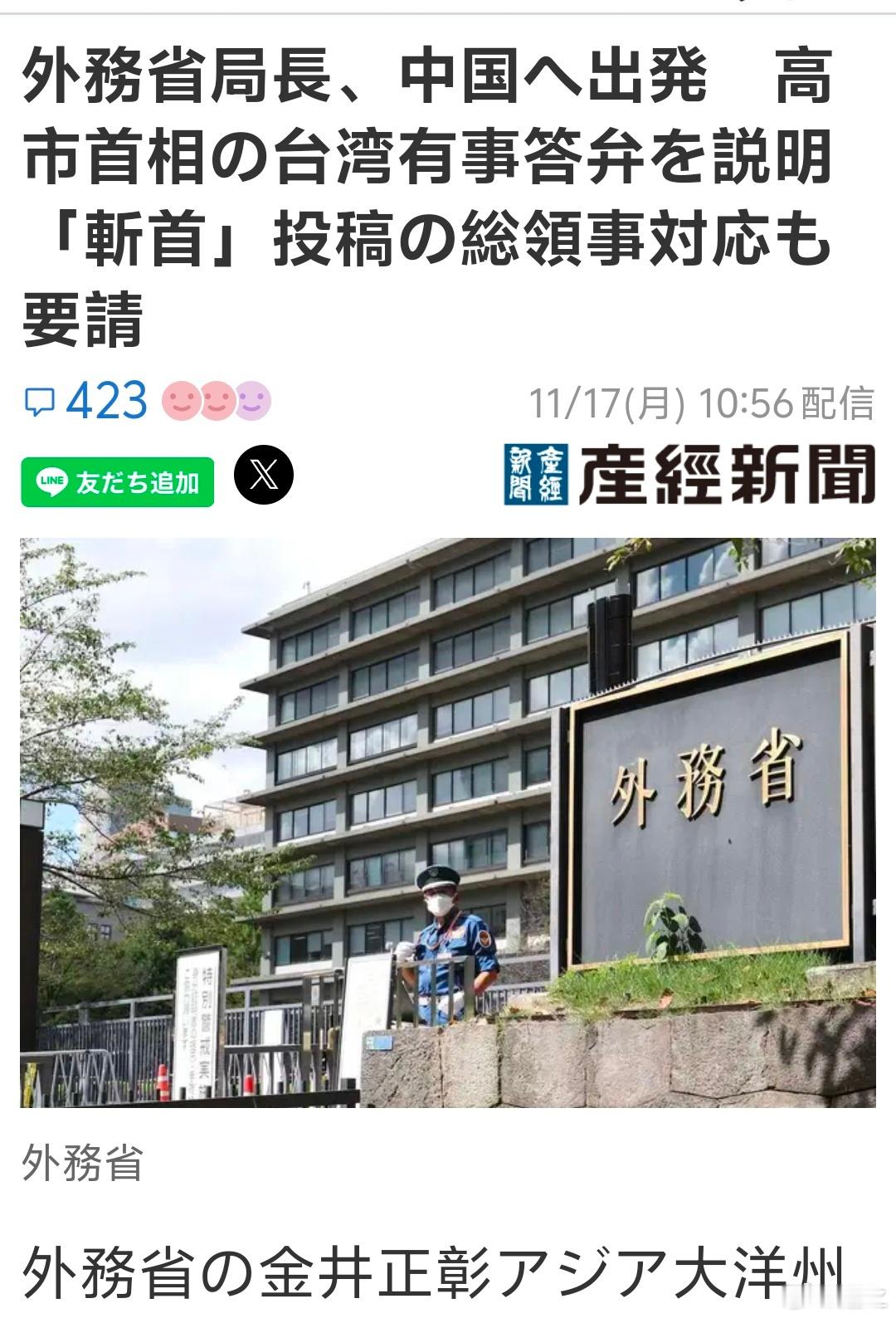今天日本外务省亚太局局长(相当于中国外交部司长)今天来中国了,日本媒体认为他就是来谈如何解决因为高市不断踩红线后,造成的中日外交关系倒退的。