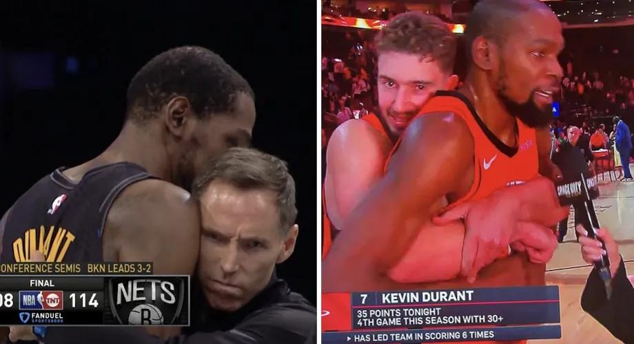 就说申京抱着杜兰特的那个画面看着眼熟呢,原来几年前在篮网的时候,纳什也这么抱过杜兰特啊,记得当年那场还是季后赛,篮网天王山打雄鹿,那一场杜兰特49分的大号三双,但凡队友能有个站出来的,雄鹿根本赢不了篮网…… 如今在火箭,杜兰特终于不用再自己扛下所有了,只需要他在关键时刻站出来就好,杜兰特那种无差别的单打能力正好是火箭最需要的