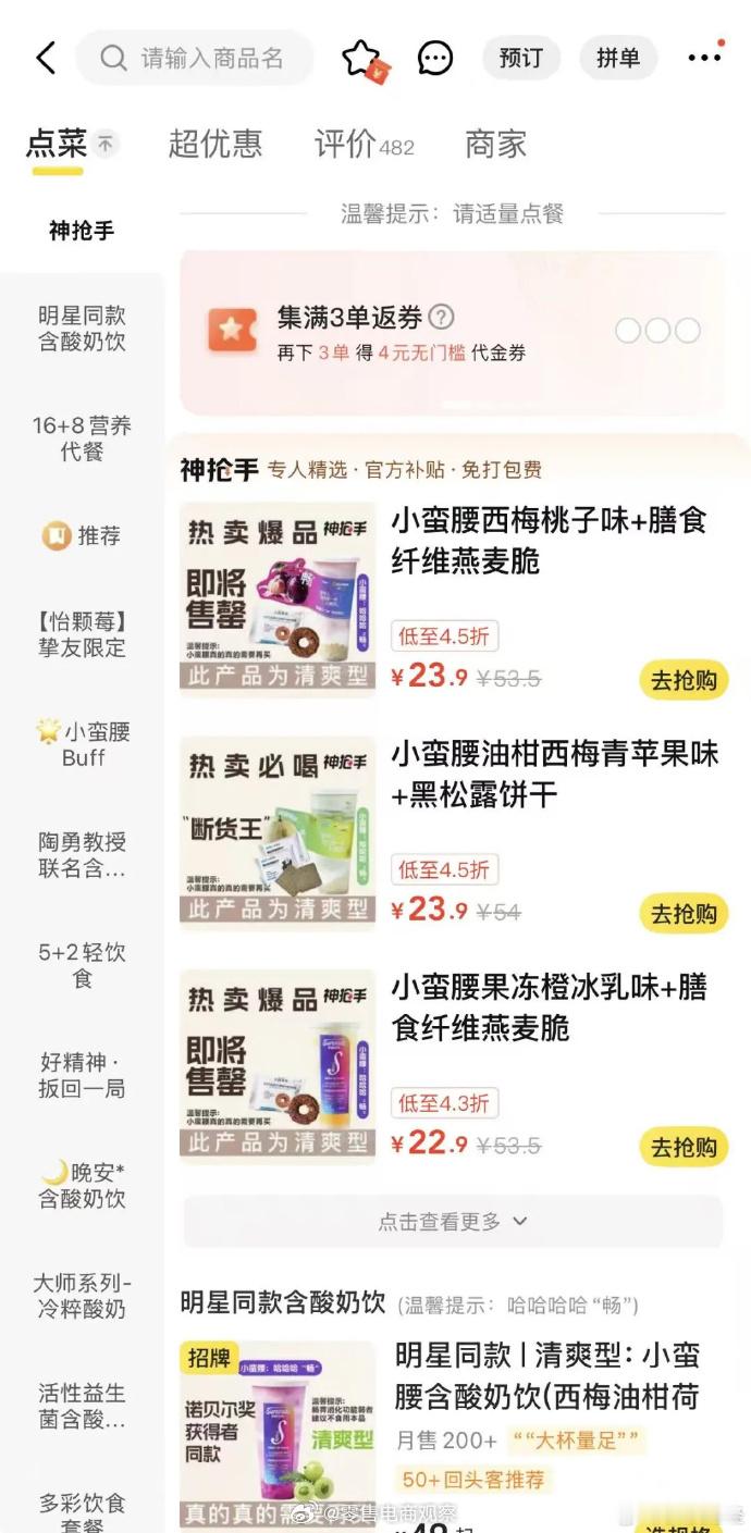 【】据报道,单杯标价49元、人均消费40元以上的高端网红酸奶品牌Blueglass,近期加入了降价行列。其部分产品在第三方外卖平台售价低至19.9元,较线下49元的原价大幅下跌60%,降价幅度十分显著。查询第三方外卖平台发现,Blueglass酸奶某门店中的“小蛮腰西梅桃子味+膳食纤维燕麦”、“小蛮腰油柑西梅苹果味+黑松露饼干”两款产品低至4.5折,售价23.9元;“小蛮腰果冻橙冰乳味+膳食纤维燕麦脆”低至4.3折,售价22.9元。此外,其他产品大多售价49元起,但显示到手价为48元。(界面新闻)