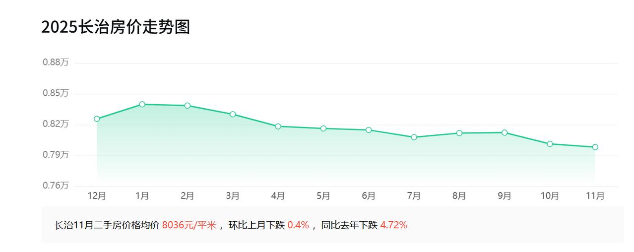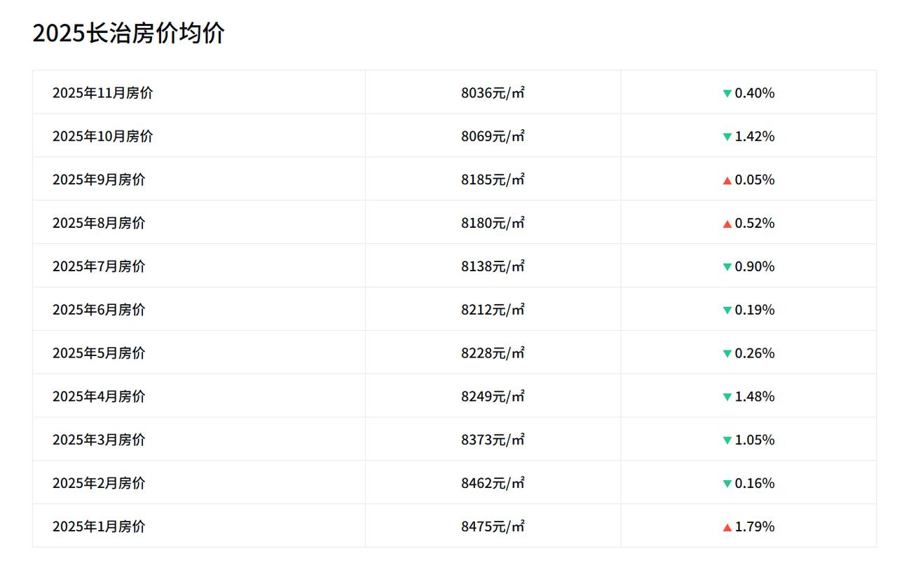 2015年10月,长治房价均价5777元; 2016年10月,长治房价均价5672元; 2017年10月,长治房价均价6182元; 2018年10月,长治房价均价6916元; 2019年10月,长治房价均价8421元; 2020年10月,长治房价均价9257元; 2021年10月,长治房价均价9275元; 2022年10月,长治房价均价8850元; 2023年10月,长治房价均价8930元; 2024年10月,长治房价均价8362元; 2025年10月,长治房价均价8069元。   回首长治十年房价,可清晰的分为三个阶段; 2015年至2018年,房价从5777元涨至6916元,年均涨幅约6%,这个时期长治经济处于转型起步阶段,传统能源工业(如煤炭)仍是支柱产业,但政府已开始推动制造业投资。   2019年至2021年,房价突破9000元,三年涨幅超34。期间,长治固定资产投资年均增长6%以上,新能源、数字经济等项目落地(如华北首个全栈式智算中心)带动就业和人口流入。同时,棚改货币化安置短期推高了需求。   2022年至2025年,房价从9275元回落至8069元,累计跌幅约13%。房企资金链承压,叠加2022年后经济增速放缓,市场进入去库存阶段。   经济结构转型 长治焦炉煤气企业在山西省数量最多、规模最大,当前焦炉煤气化产利用率已达74%,煤电机组改造提前完成,减少了对煤炭的依赖。数字经济营收达163亿元,但制造业投资2025年同比下降25.7%。社会消费品零售总额增长3.2%,居民收入增速(2024年城镇3.7%、农村5.6%)略高于GDP,但购买力疲软。   老旧小区改造和太行一号旅游公路的全线贯通,有力提升长治城郊区域吸引力,但人口外流压力仍然很大,特别是太原、郑州。   长治的楼市已经趋于稳定,房价和当地经济和政策息息相关,无论市场如何变化,满足自己真实居住需求才是最明智的购房决策。房子不仅仅是资产,更是家的容器,是无数长治人民对美好生活的向往和追求。