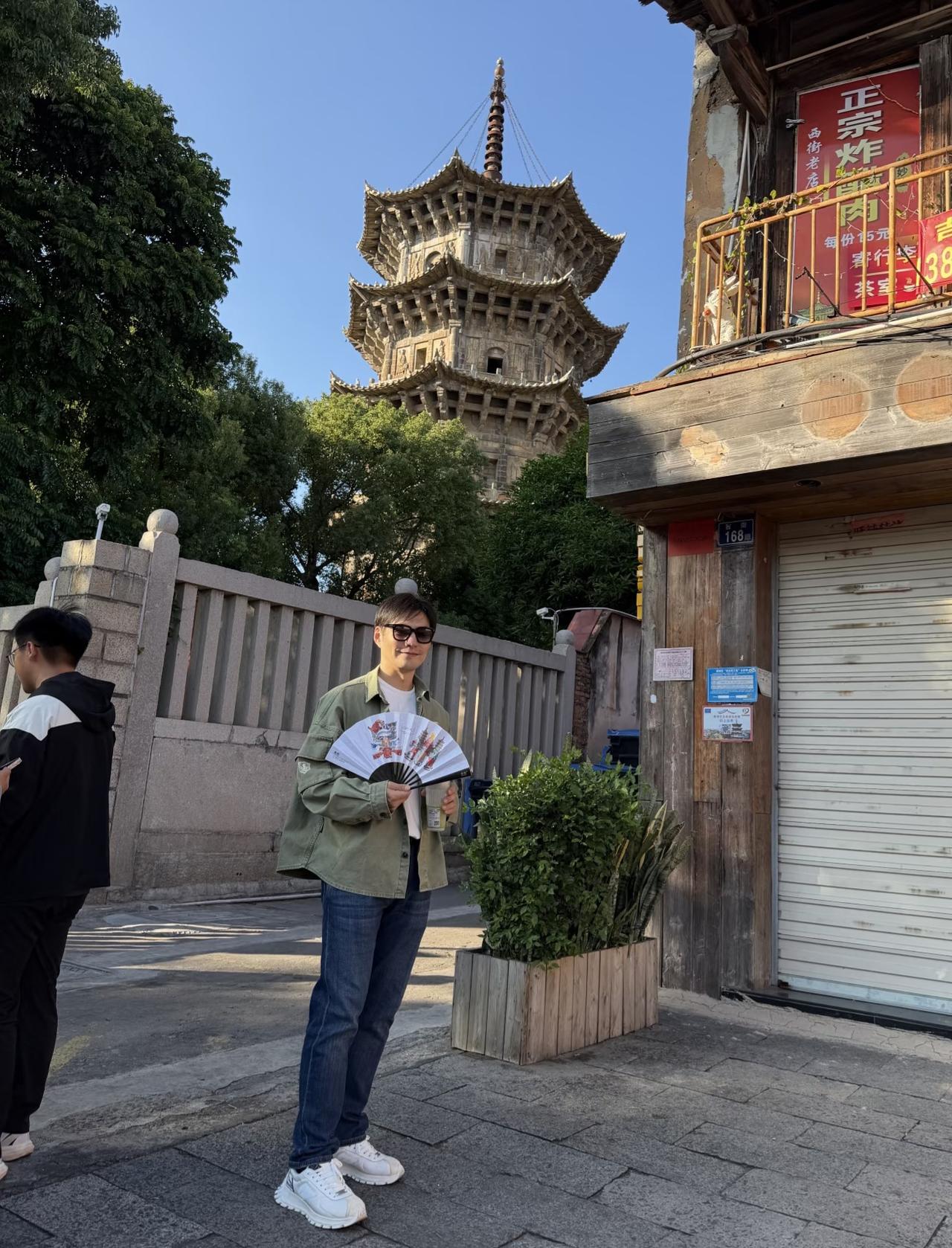 用“法拉利老了,还是法拉利”这句话来形容严屹宽再恰当不过! 泉州东海市井十洲城遇到他,当年的天涯四美之一,内娱公认的建模脸古装男神虽然现在已经46岁, 但大帅哥的底子还在脸庞俊美气宇不凡。 穿着橄榄绿外套戴着琥珀色复古墨镜的他, 时尚年轻又帅气,年轻时他是玉树临风一身贵气的英俊小生,年纪大了是内敛沉稳的魅力大叔,每个年龄段都有不一样的魅力,走在人群中身材形象气质都十分出众一看就是明星, 真人要比照片上还要帅气很多。