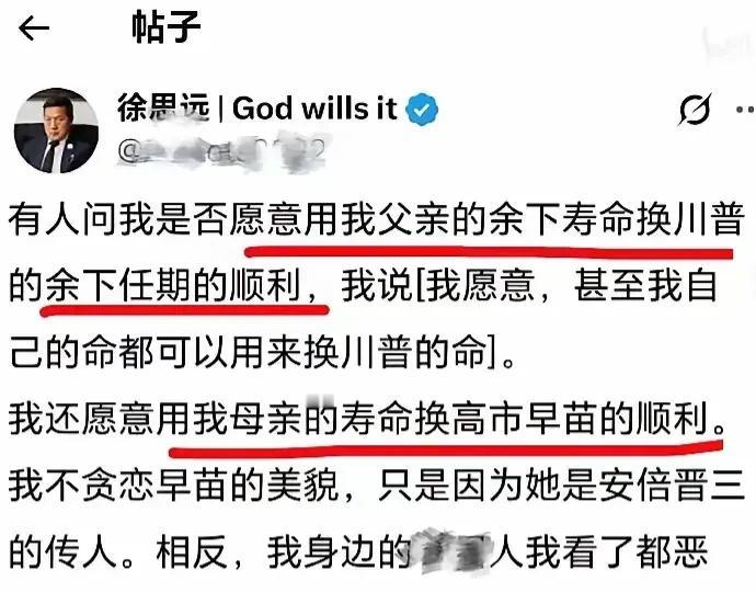 我只能说,这样的人,快去当他的美国人吧!中国真容不下你。 这样的人简直是丧心病狂,你愿意用你自己的命去干什么,别人也管不住,但用自己父母的名去换川普,早苗的命,属实有点良心被狗吃了,父母看到都得后悔没把你淹死在尿盆里。