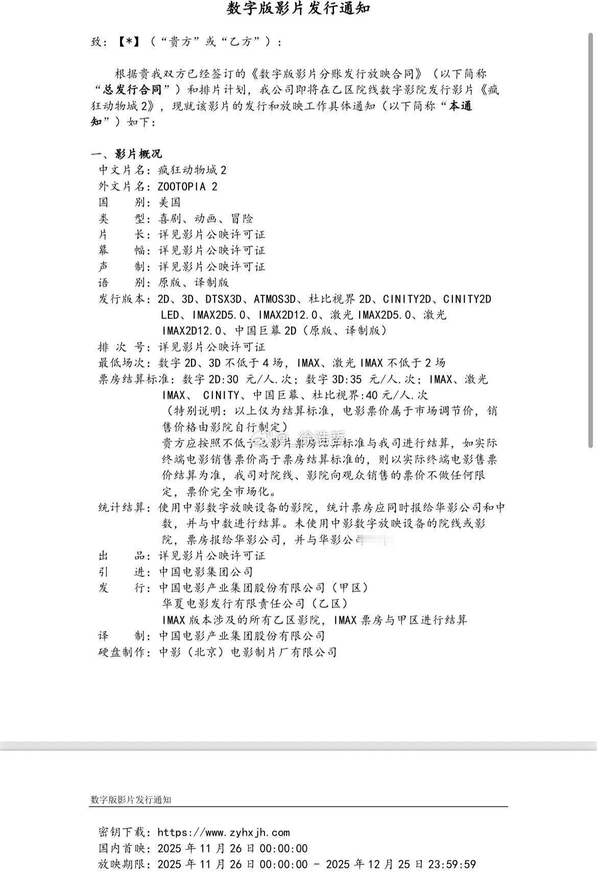 发行通知已出 专资办已录入片长108分钟 有零点场 3D只有数字普通版 特效厅版本均为2D英文原版和中文配音版 片尾主题曲都是五月天《派对动物》