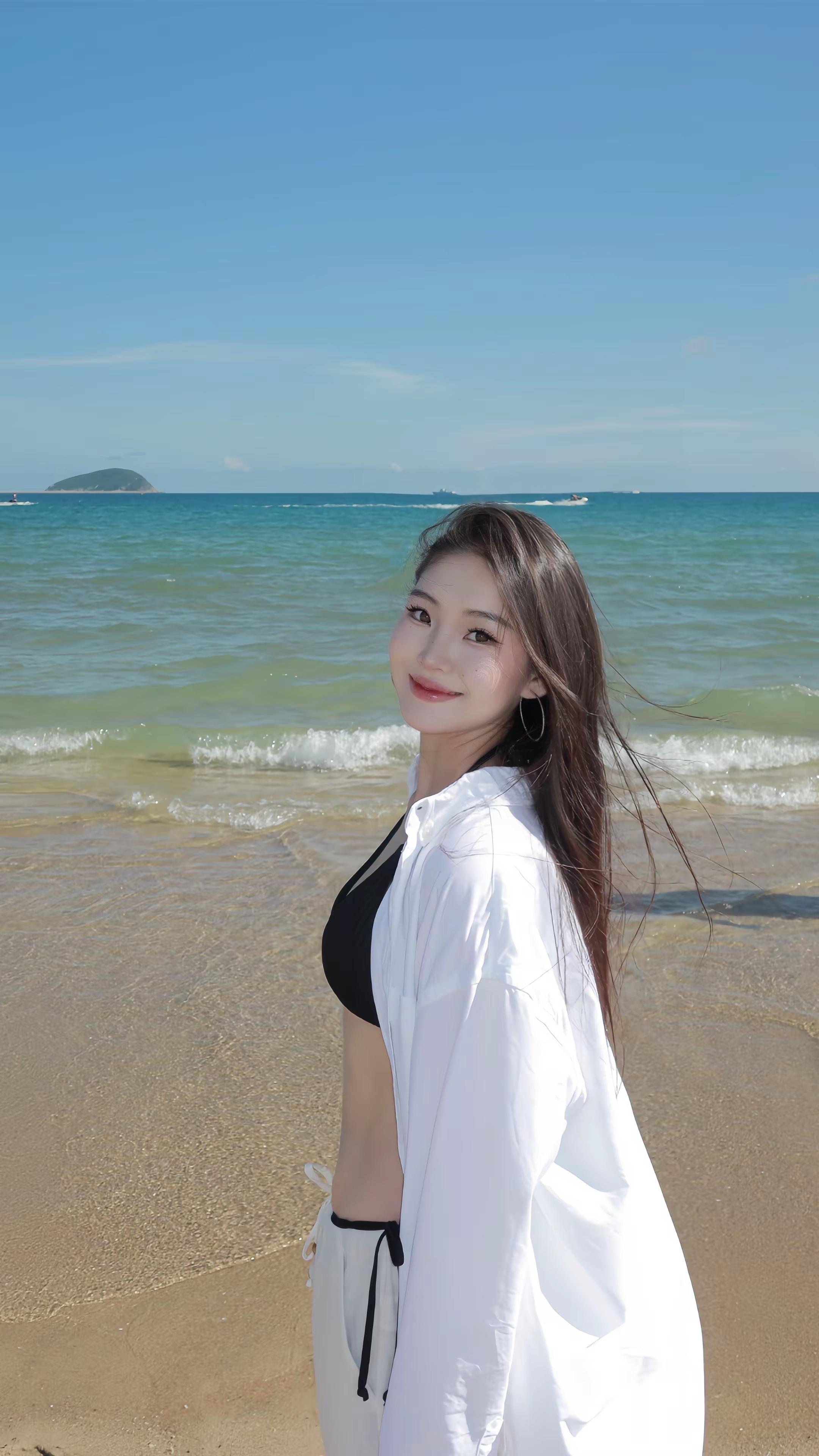 夏日海滩穿搭,清爽白色内衣,轻松自在的一天!