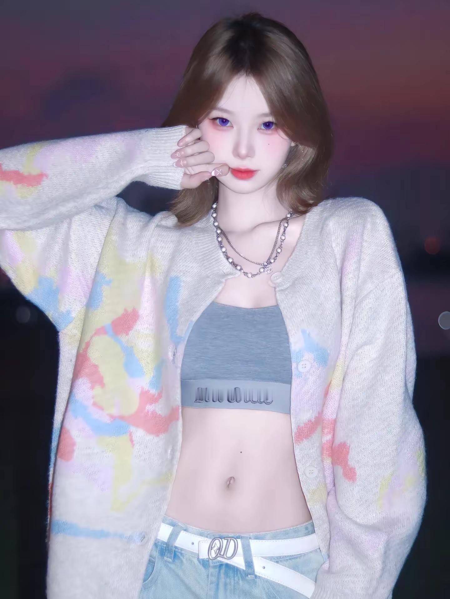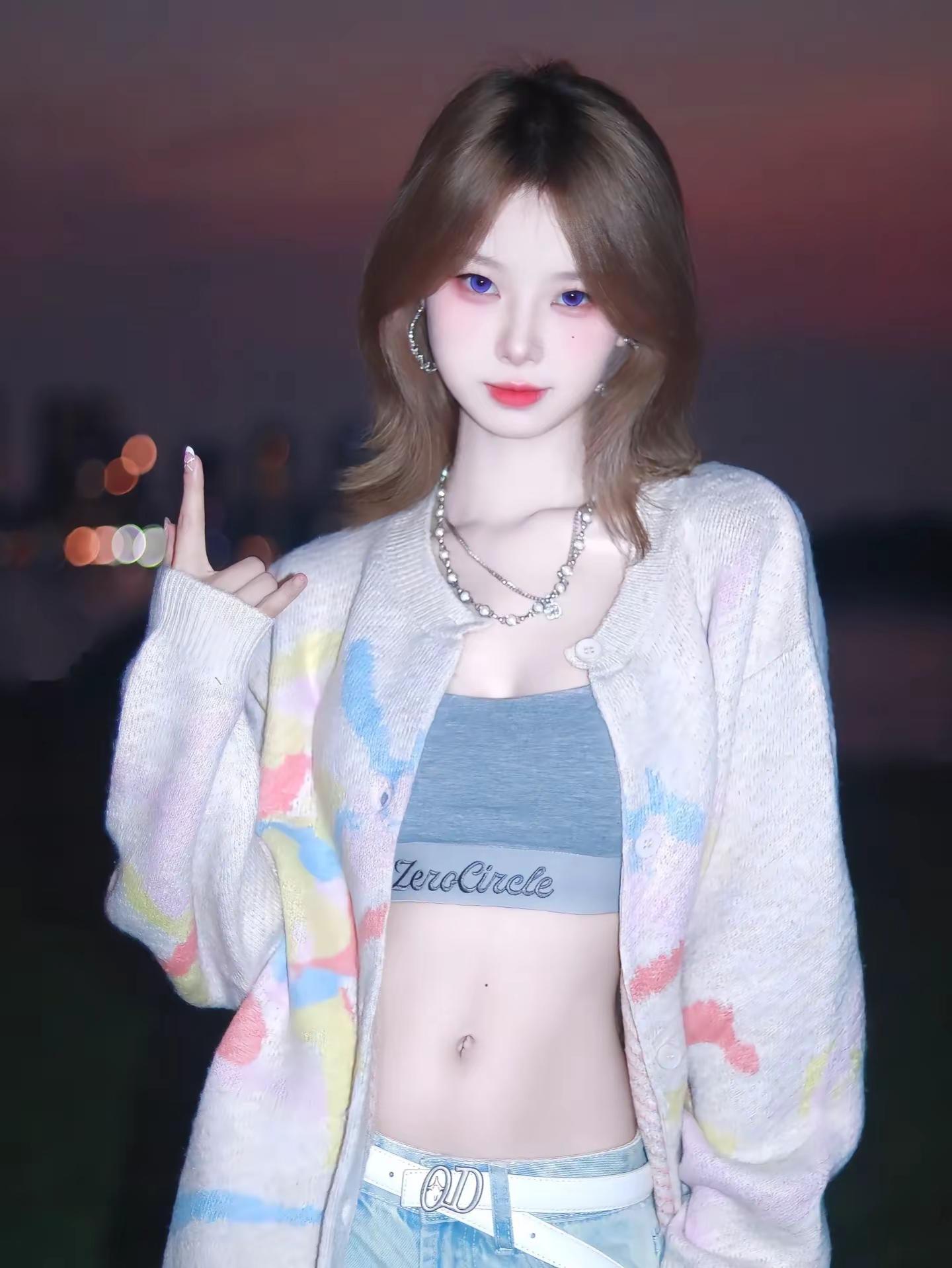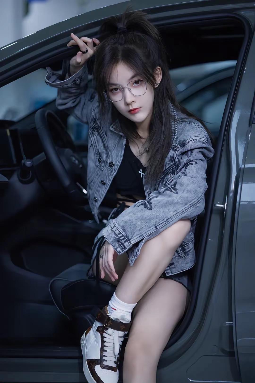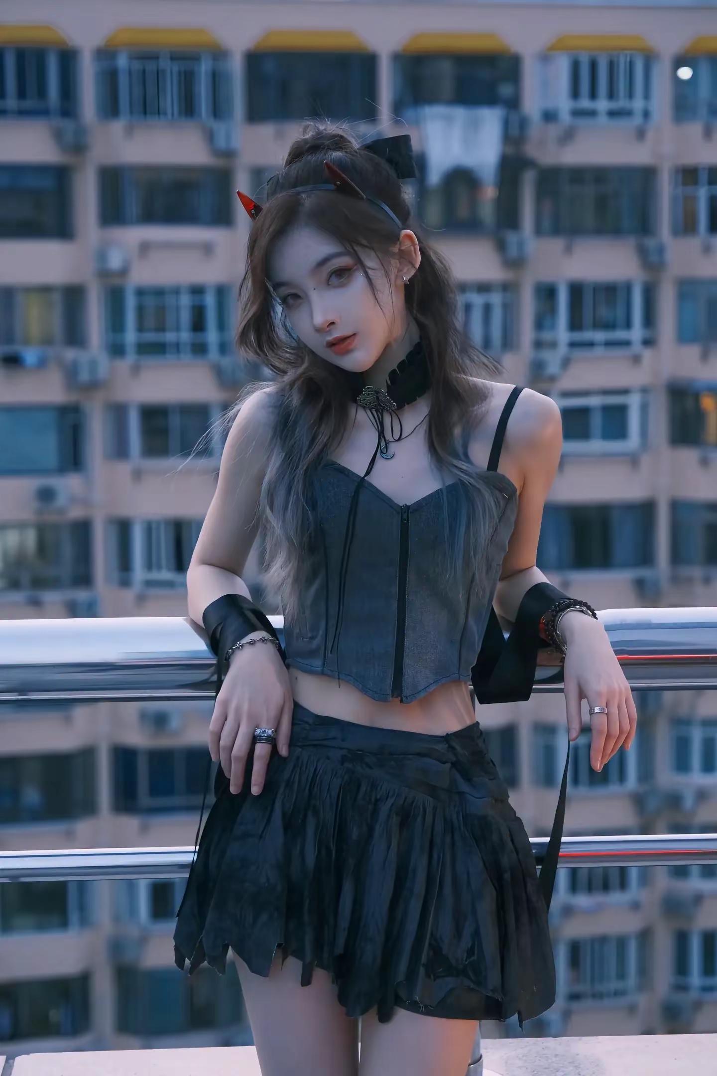 田曦薇高清美照分享|一个女孩在街头摆姿势,穿着酷酷的服装。