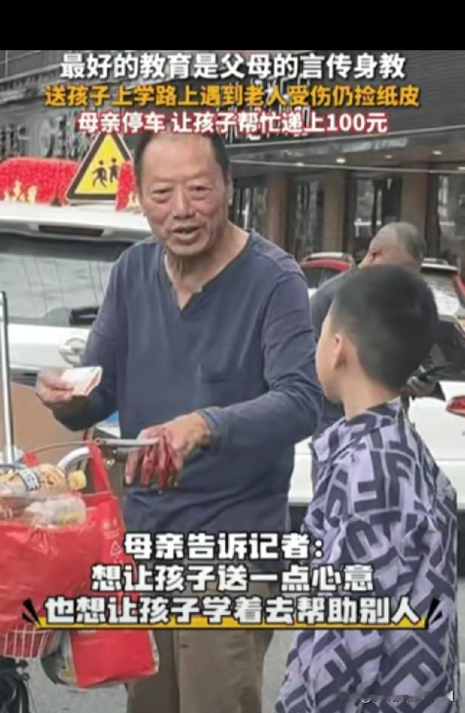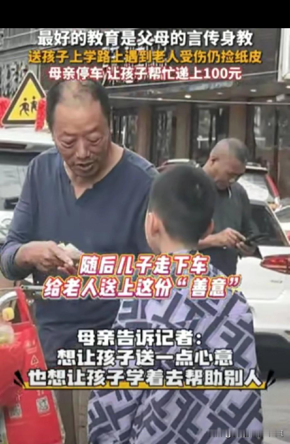 “成功的教育!”福建,一位妈妈送儿子上补习课,半路上她突然拿出100元递给儿子:“我可以请你帮我一个忙吗?”接下来的一幕让网友们感动不已。 孩子犹豫地接过钱,妈妈摇下车窗指向不远处一位正在捡纸皮的老人。老人手背渗着血迹,推着堆满废品的三轮车在车流中艰难前行。"帮妈妈把这钱送给老爷爷好不好?"孩子本能地退缩:"我不敢..."妈妈轻轻握着他的手:"你看爷爷手受伤了还在工作,我们能不能做点什么?"这个简单的举动,把路边偶遇变成了生动的善良实践课。 太多家庭教育停留在"好好读书"的说教层面,这位妈妈却让孩子触摸到真实的世间冷暖。就像泉州刘月红老师,当发现儿子沉迷游戏甚至自残时,她没有继续施压,而是开始学习如何真正理解孩子,最终用尊重和接纳引领孩子走出困境。教育最神奇的时刻,往往发生在放下说教、带给孩子真实情感触动的瞬间。 这种现场教育比任何道德课本都来得有力。孩子捏着钞票走向老人的那十几米,实则是跨越了从"小自我"到"关心他人"的成长阶梯。哈佛心理学研究早就指出,约80%的青少年认为父母更关注成绩而非是否关心他人,而这恰恰是塑造孩子品格的关键。福建妈妈用请求帮忙的平等姿态,让孩子自然萌生责任感而非被迫行善。 值得反思的是,很多家长把善良教育简化为"不要和陌生人说话"的过度保护。厦门杨艳家庭的做法或许能带来启发,他们通过组织社区亲子阅读、参与环保活动,让孩子在安全环境中学习关爱他人。真正的保护不是让孩子活在无菌环境,而是教会他们在保持警惕的同时不失温暖。 这种随机善举也存在被浪漫化的风险。单次给予难以根本改变弱势群体处境,甚至可能让孩子将助人简单理解为金钱施舍。更可持续的方式或许是带着孩子买创可贴帮忙包扎,或引导他思考:除了给钱,我们能否为老人联系社区帮扶?就像莆田徐碧霞家庭,他们鼓励孩子参与垃圾分类、帮助同学,把善良融入日常生活的每个细节。 教育的本质差异往往体现在这些微小时刻。当孩子怯生生说"我不敢",妈妈没有代替他完成或责备,而是用"我们一起"的陪伴给予安全感。这种教育智慧,与刘月红老师从控制到理解的转变如出一辙——真正的教育不是塑造顺从,而是唤醒内在的善良力量。 各位读者你们怎么看?欢迎在评论区讨论。