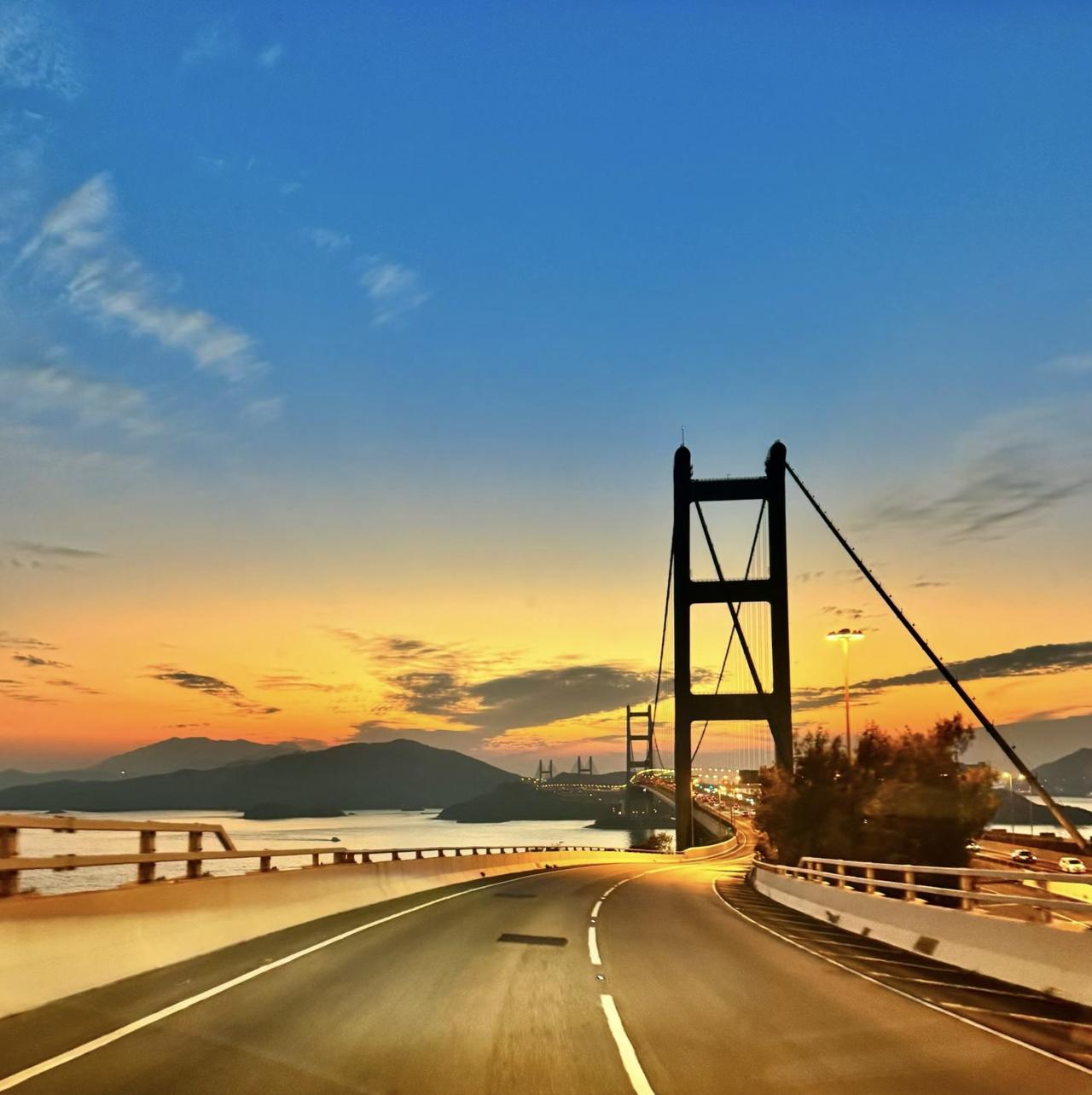 11月17日傍晚的香港荃湾区青马大桥,美出天际