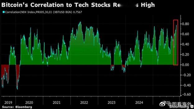 比特币与美股科技股相关性飙升最新数据显示,比特币与纳斯达克100指数的30天相关性已升至约 0.80 —— 不仅创下自2022年以来的最高水平,也是过去十年的第二高点。📈回看过去5年,除2023年的短暂背离外,比特币与美股科技板块几乎始终同涨同跌,其 5年相关性高达0.54。相比之下,它与现金、黄金的相关性几乎为零。这意味着什么?比特币越来越像一只“高 Beta 的科技股”,市场风险偏好上行时涨得更猛、回调时跌得更狠。加密资产与传统科技股之间的界限正在变得越来越模糊。