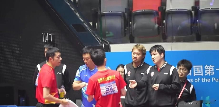 东哥在上海队,不仅是最强一单,还兼任技术指导,哈哈 东哥以前从来不管闲事, 这次全运会东哥也是拼了, 看来想帮上海队拿下男团冠军。 那边马龙也亲自上场了, 今天打了两场, 最后两局体力透支了, 脖子青筋都出来了, 他也是要誓拿冠军, 好想看他们再打一盘!