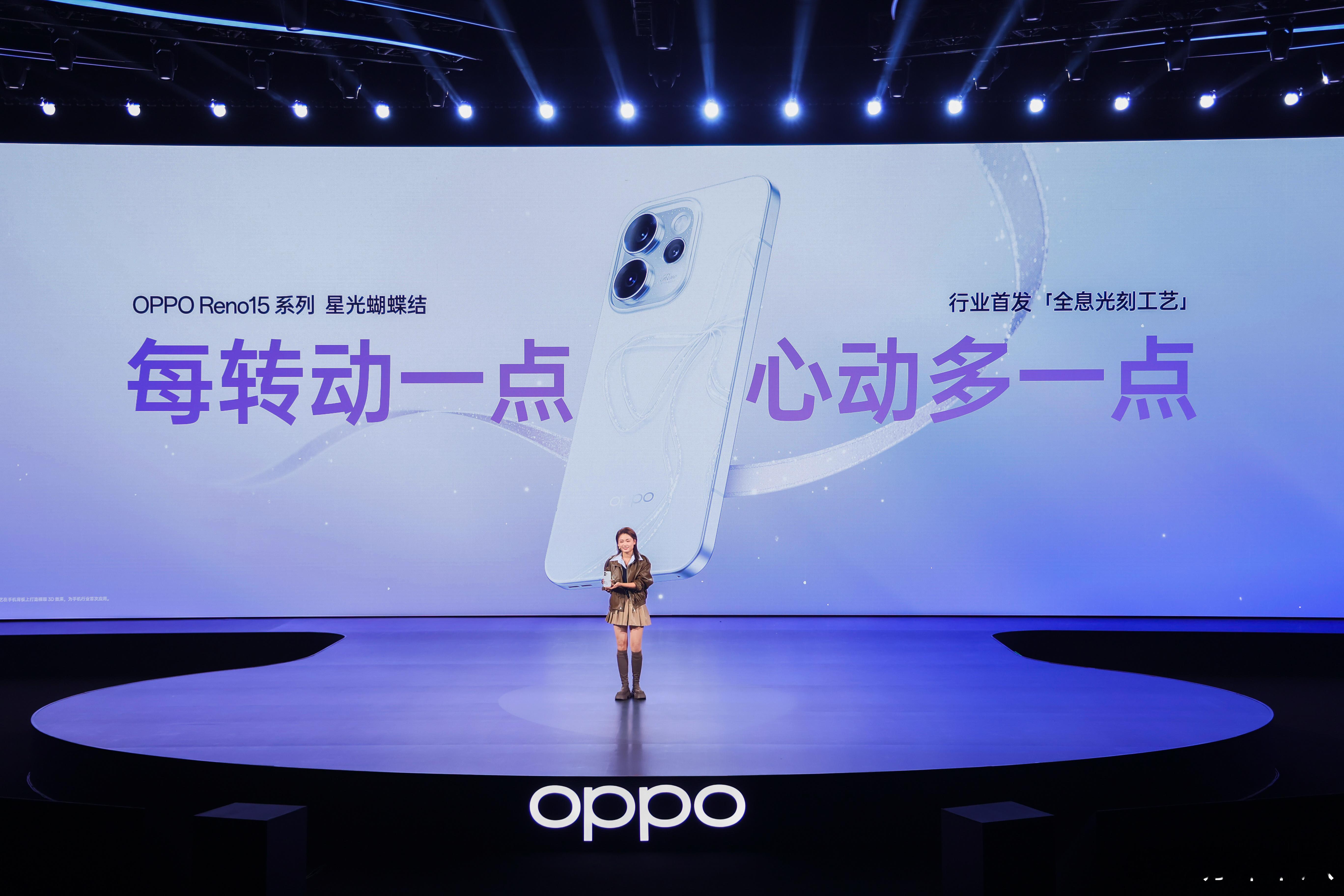 系列首发「全息光刻工艺」,缓缓转动手机,后盖上的蝴蝶结就会翩翩起舞,生命力直接拉满。200万颗激光粒子,在光滑的玻璃上绘出blingbling的裸眼3D蝴蝶结。更巧妙的是,它在不同光线下收放自如:无光时,呈现纯净柔和的白色;有光时,则绽放夺目光彩。可璀璨可静谧,这一份恰到好处的分寸感,被 OPPO 细腻拿捏。