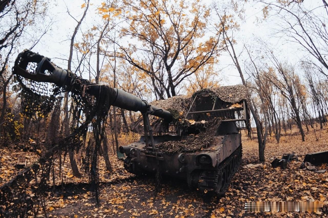 🇺🇦乌克兰武装部队的一门155毫米M109自行火炮,炮塔上装有大型反无人机格栅。