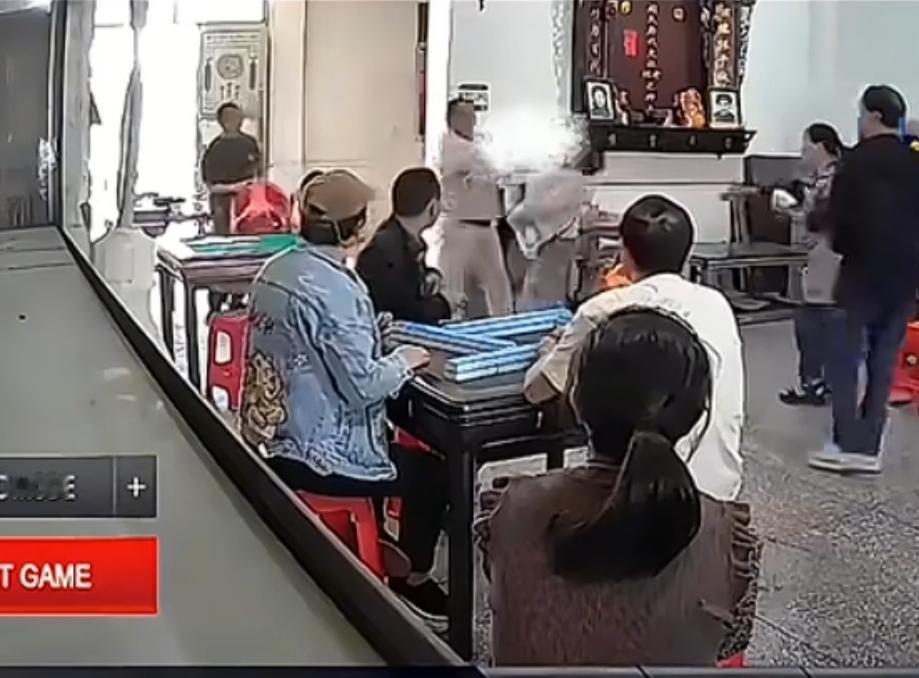 这其实是一个动态视频,这两个人从一开始争执,这个女子就强势逼人!总共拿了三次凳子