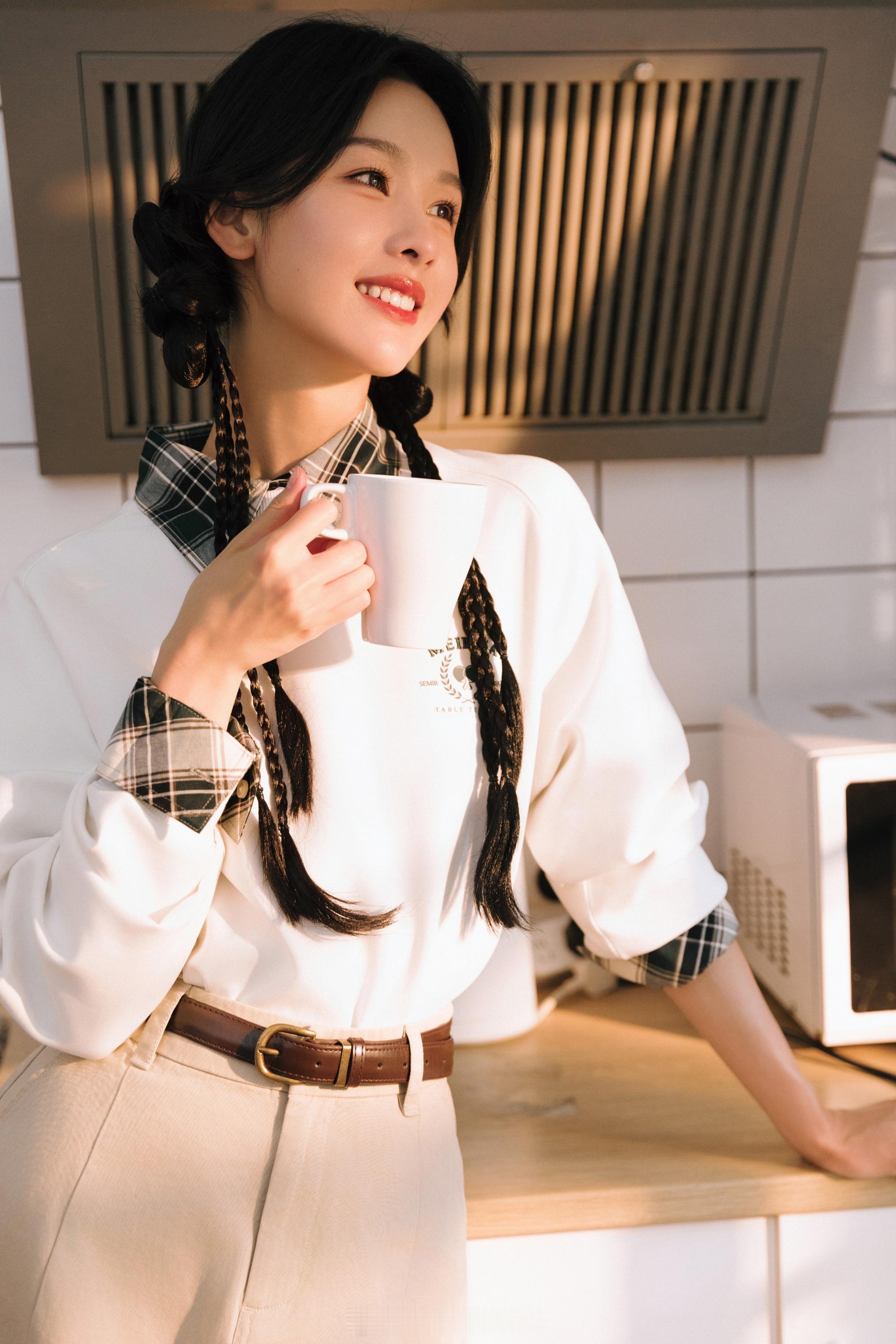 刘亦菲把死亡玫粉穿出了定制款的感觉,这种颜色普通人穿上分分钟黑三度,她居然能穿出
