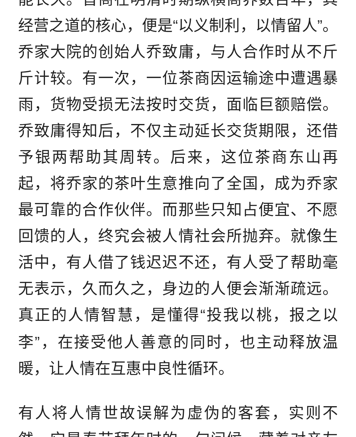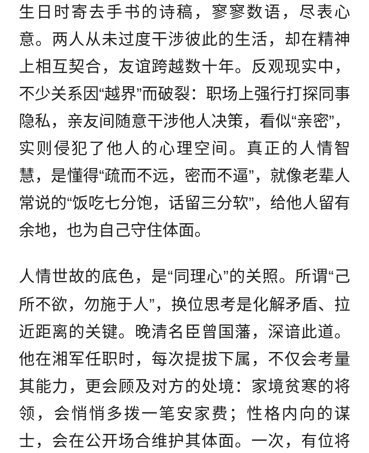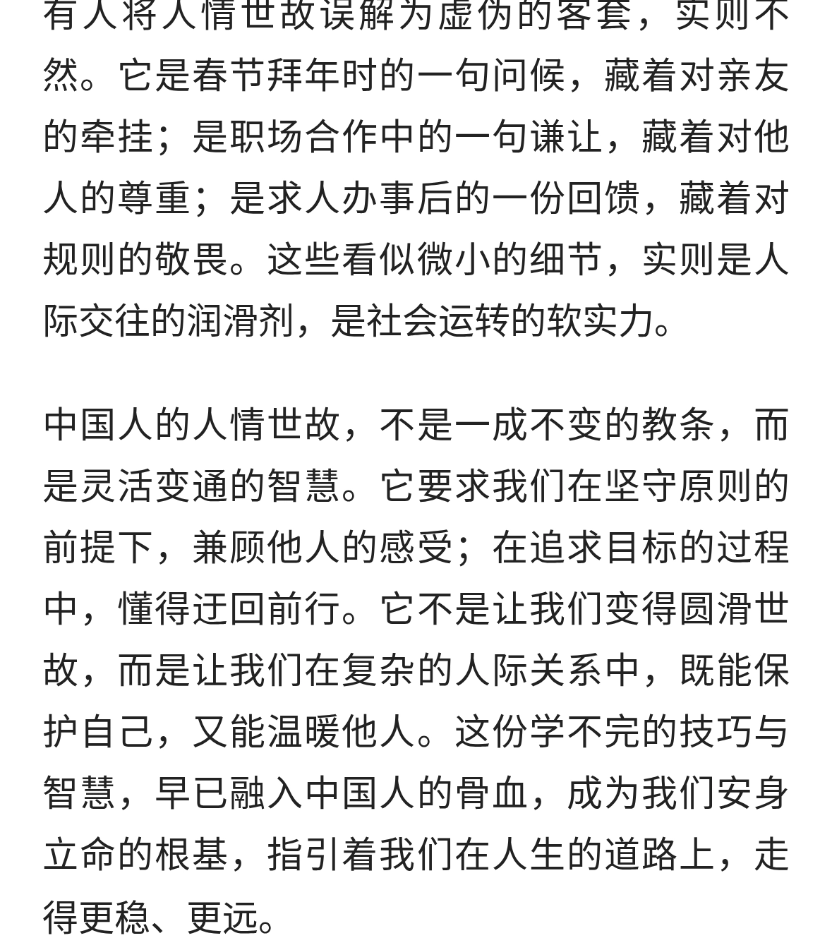 一段醍醐灌顶的话: “人情世故, 不是虚伪, 而是生存的必...