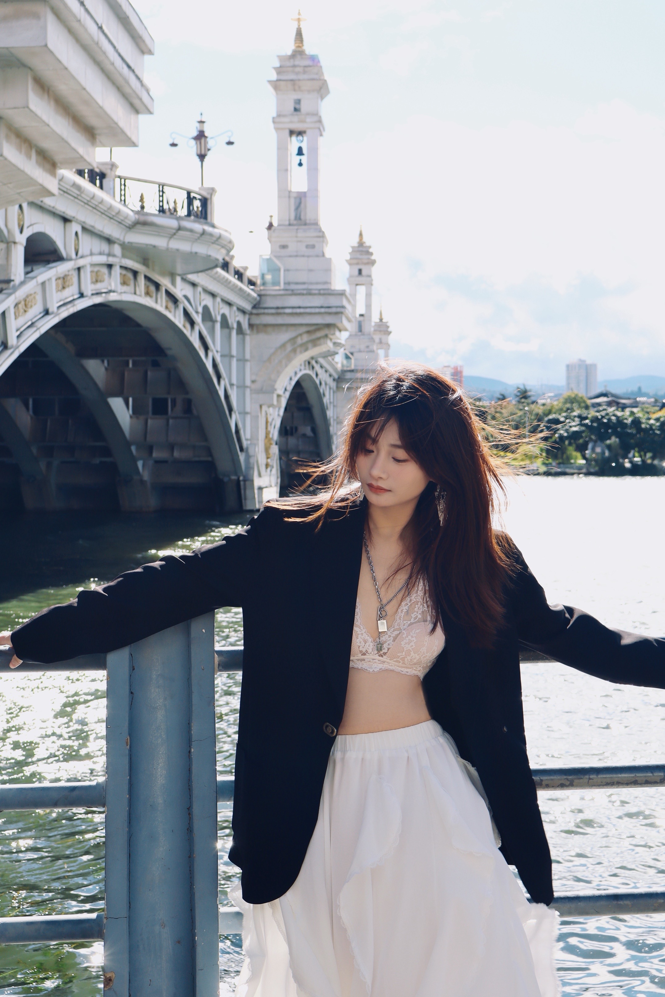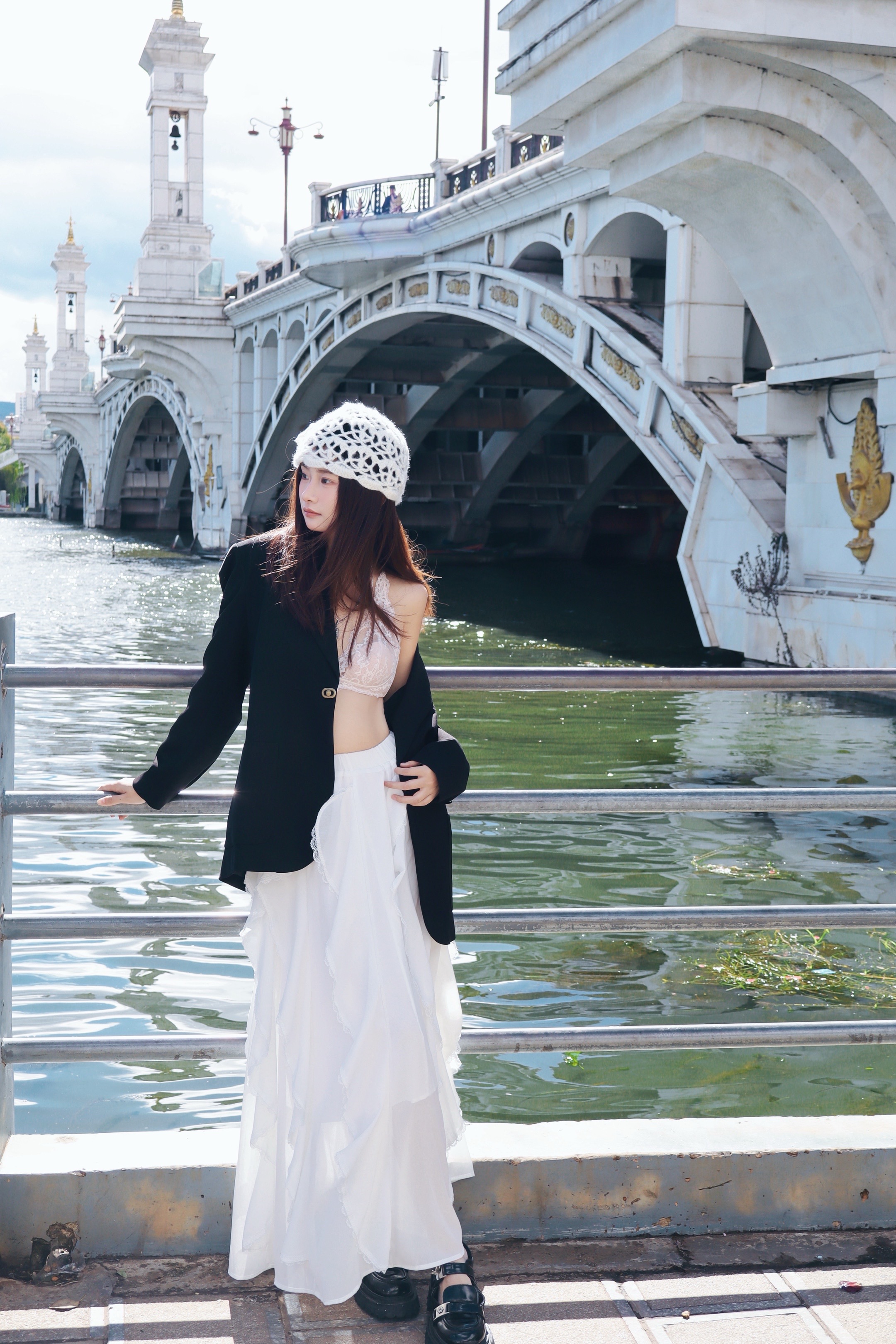 夏日海滩穿搭,清爽白色内衣,轻松自在的一天!
