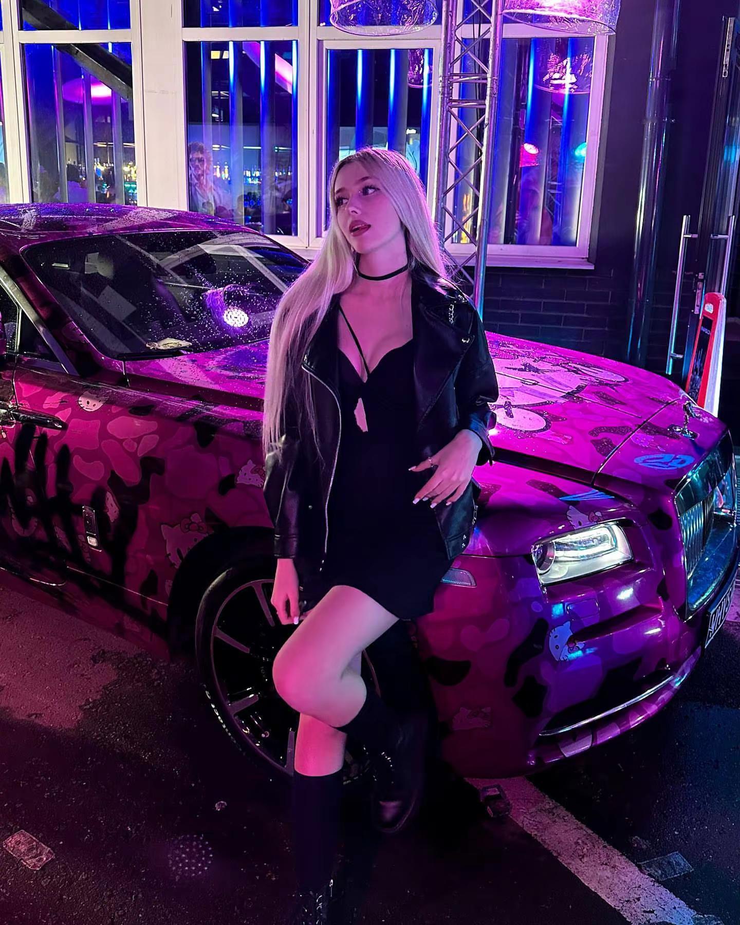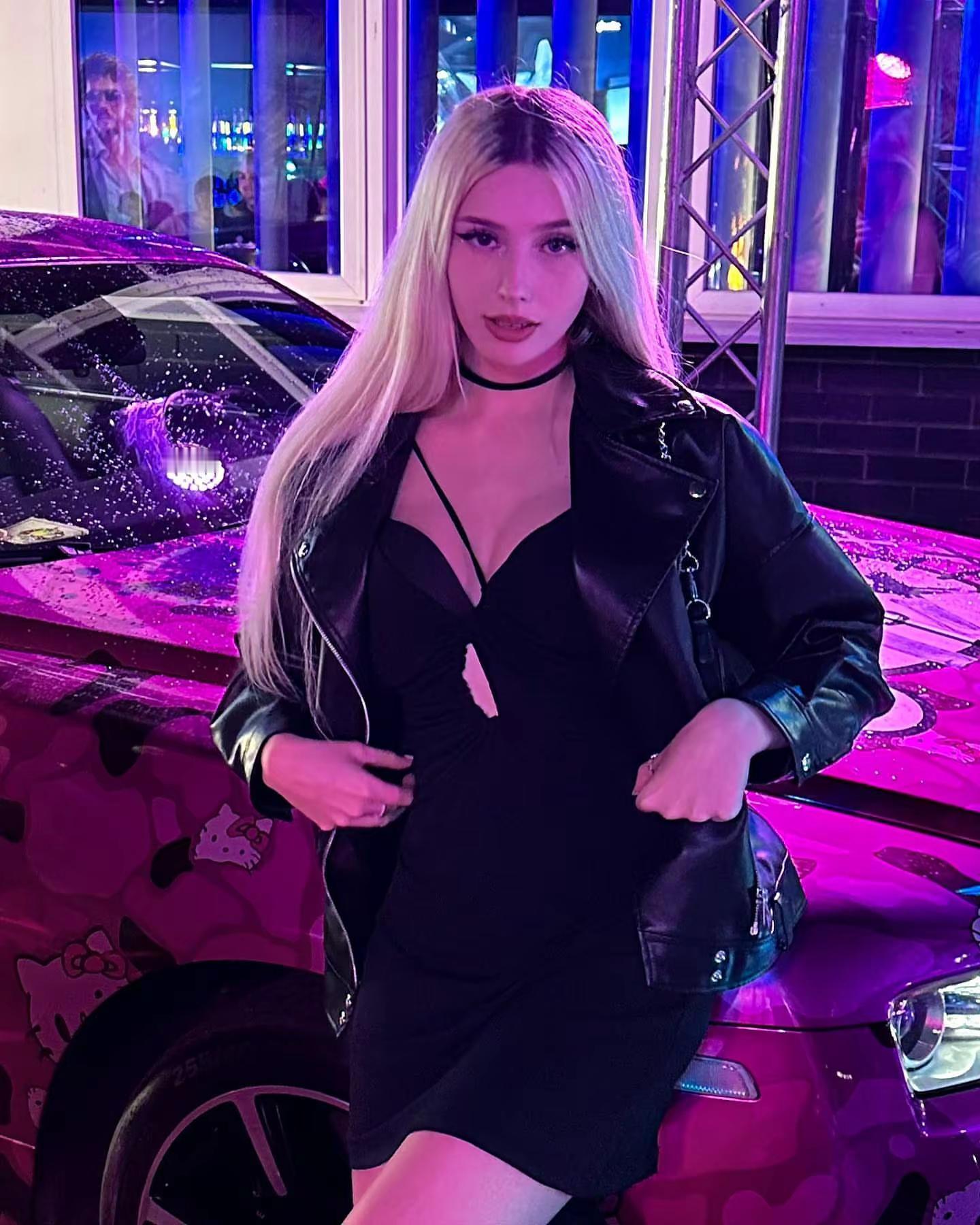 田曦薇高清美照分享|一个女孩在街头摆姿势,穿着酷酷的服装。