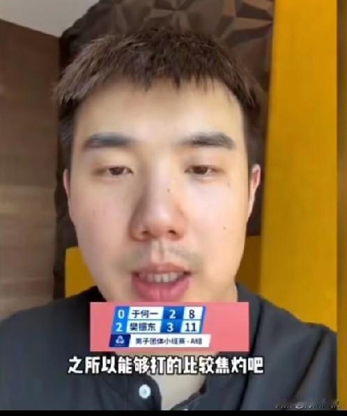 于何一专门直播说明,我为什么和东哥打到胶着? 他说:一场球不算什么? 他刚和大头打完, 比较累, 我和东哥差距很大, 东哥调动有些慢。 加上我的运气比较好, 这才打的胶着, 最后一局前半段我还8:5领先, 东哥一集中注意力, 就直接赢了6个球, 11:8逆转了, 这才是我们真正的差距!
