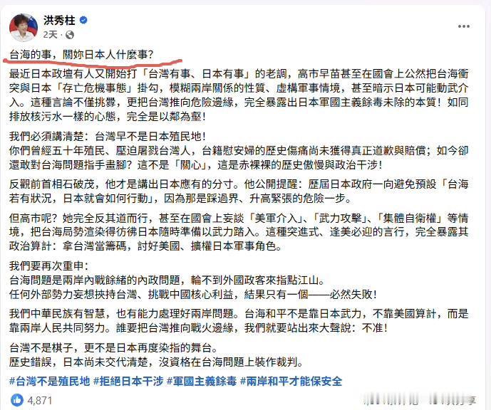 洪秀柱发帖:台海的事关日本人什么事!结果贴子下面一群青鸟叫嚣!