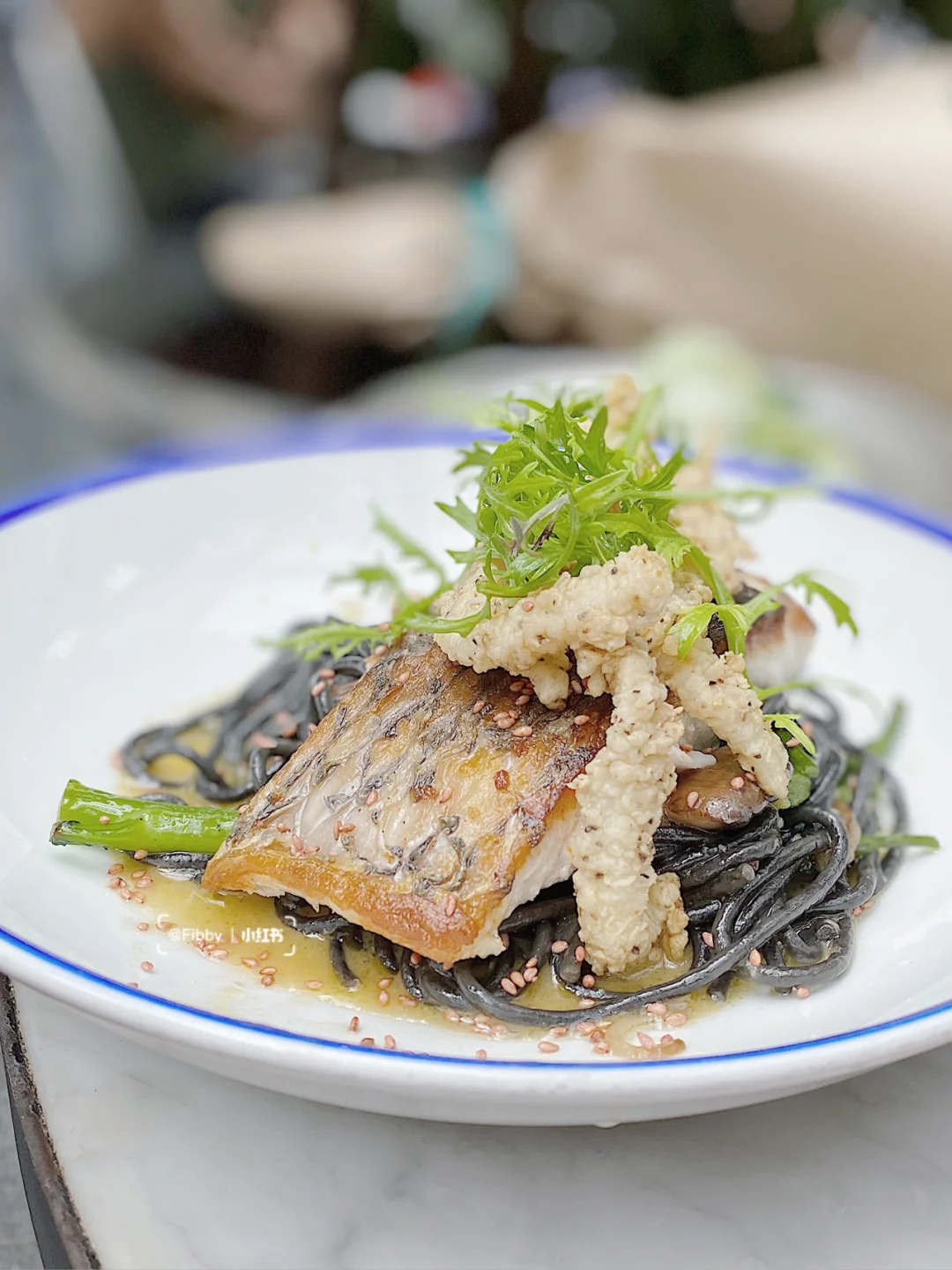 🟡意面🍜(图4):意面真是的我去每一家brunch不确定吃什么的时候一定会点的一道了.他们家的意面是黑色的耶!而且配上酱汁真的超好吃啊!