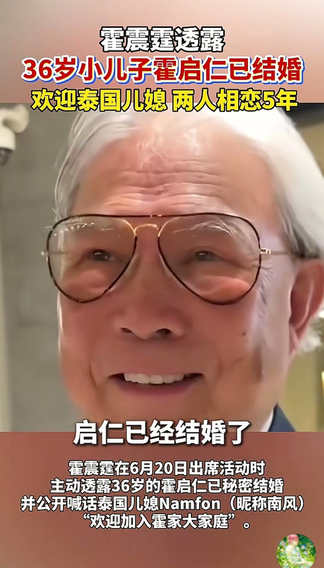 郭晶晶即将迎来最美妯娌 11月16日 霍启刚的弟弟霍启仁和他的泰国妻子Namfon在玉龙雪山举行婚礼两人已经相爱了五年时间双方家长都盛装出席 但是郭晶晶和霍启山忙于全运会的事情,并没有出席 霍震霆笑说“欢迎儿媳加入我们的大家庭”,看得出来,霍震霆对这个儿媳还是非常满意的