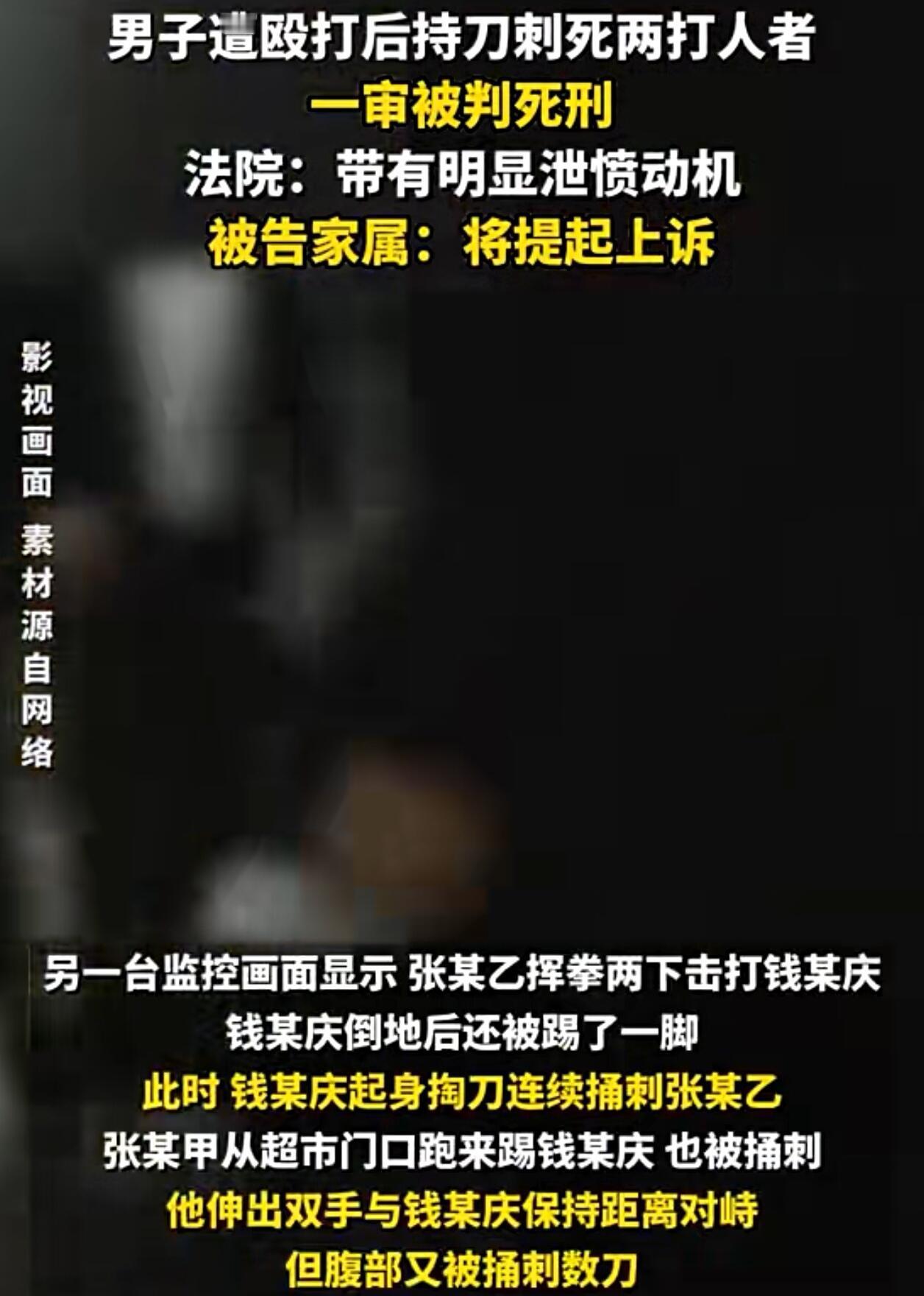 这事儿真是让人心里堵得慌。浙江杭州那菜地纠纷闹出人命,最后动刀子的钱某庆被判了死刑,网上吵翻了天,要我说,里头确实有不少值得琢磨的地方。 一开始就是菜地那点破事,结果两家结怨越来越深。钱某庆觉得自家超市被拆是张某甲搞的鬼,反手就把人家猪圈给举报了,这梁子算是彻底结下了。去年12月出事那天,张某乙喝了酒跑到钱家超市又打又砸,还叫上家里人一起堵着钱某庆揍。 关键就在这儿——钱某庆一边往后退一边掏出了刀子。法院判他故意杀人,说是带着泄愤的动机。可他家里人坚持说是被逼急了才自卫的,这两天已经准备上诉了。 我仔细想了想,觉得这事儿判死刑是不是太重了?确实死了两个人,悲剧已经发生。但换个角度想,当时他被好几个人围着打,那种情况下谁能保持完全冷静?要说他早有预谋去杀人,好像也说不太通。 网上两边吵得不可开交。一边说这就是正当防卫,总不能站着等死吧;另一边说法院判得对,不管怎样都不能动刀子。说实在的,咱们都不在现场,很难完全还原当时的情况。 钱某庆家里还有快八十的父母,听说因为这事每天睡不到两小时,真是造孽。两条人命没了,另一个也可能要偿命,三个家庭就这么毁了。 这事给咱们提了个醒,邻里纠纷真不能硬碰硬。当初要是有一方愿意退一步,或者找村里、找法律来解决,也不至于闹到这步田地。现在说啥都晚了,只希望上诉能有个更合理的结果吧。