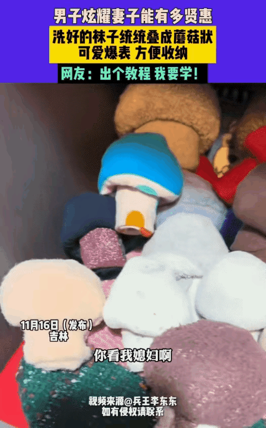 “太贤惠了!”吉林,男子炫耀自己媳妇整理洗好的袜子,居然全都叠成了小蘑菇的模样,
